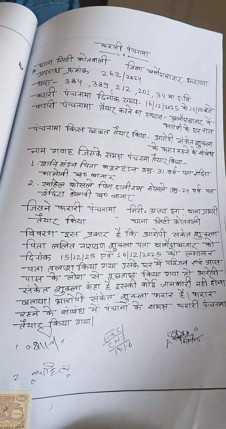 बलौदाबाजार हनी ट्रैप- सेक्सटॉर्शन केस: डेढ़ साल से फरार आरोपी संकेत शुक्ला अब तक गिरफ्त से बाहर, पुलिस की कार्रवाई पर उठे सवाल