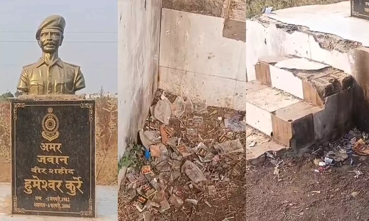 शहीद की प्रतिमा का अपमान: बलौदाबाजार में वीर सपूत हमेश्वर कुर्रे की मूर्ति की उपेक्षा, शराबियों का अड्डा बन चुका है स्थल