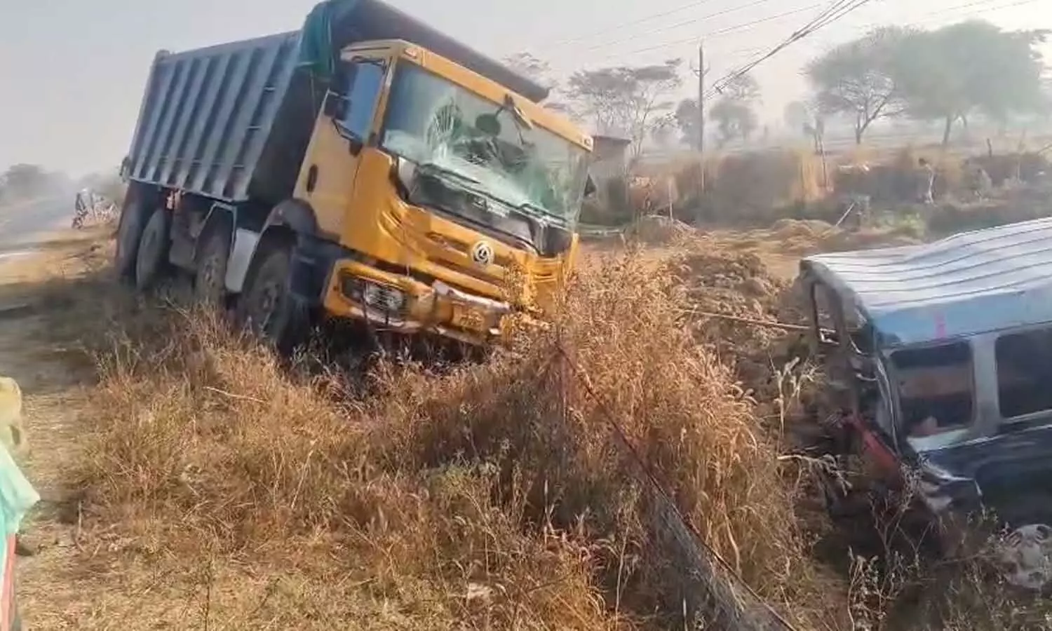 हादसे क्षतिग्रस्त हाईवा और वाहन