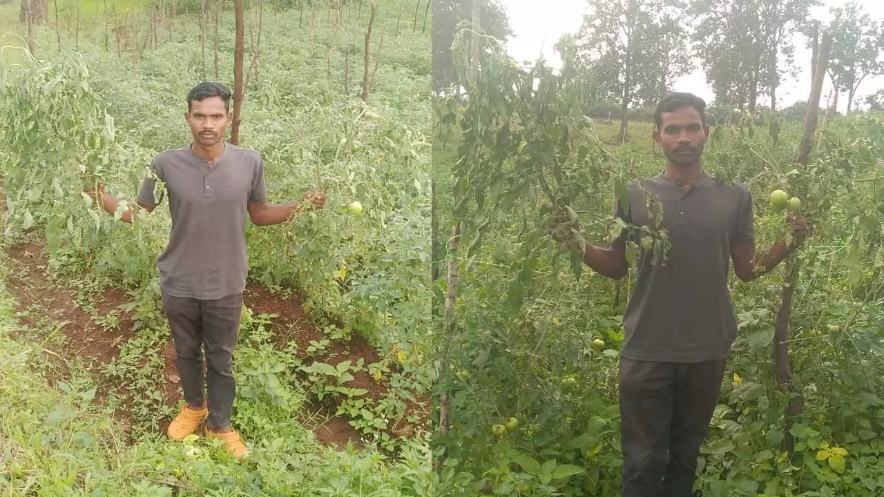 आशीष कुमार गुप्ता- बतौली। पुरानी दुश्मनी ने एक बार फिर किसान की मेहनत पर पानी फेर दिया। सरगुजा जिले में मूर्ताडांड में बीती रात आसामाजिक तत्वों ने किसान के टमाटर की कड़ी फसल को बर्बाद कर दिया। लगभग डेढ़ एकड़ में लगी टमाटर की फसल को हंसुआ से काटकर तहस-नहस कर दिया गया, जिससे पूरे खेत में लगे पौधे और फल पूरी तरह नष्ट हो गए। इस कारण सदमे में किसान को कर्ज भरने की चिंता सता रही है।
