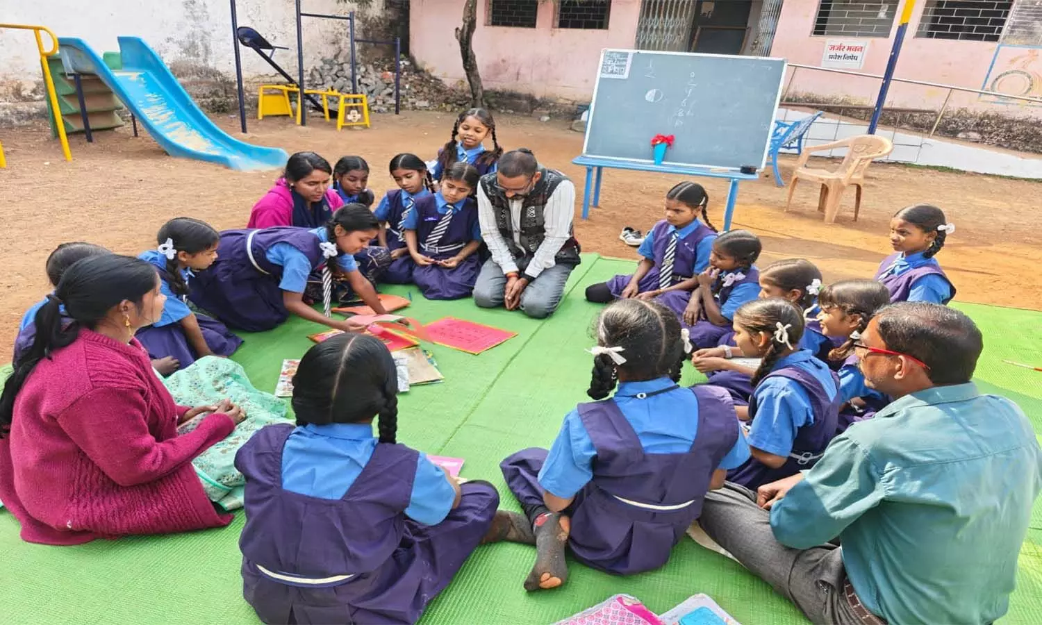 बच्चों को पढ़ाते हुए शिक्षक