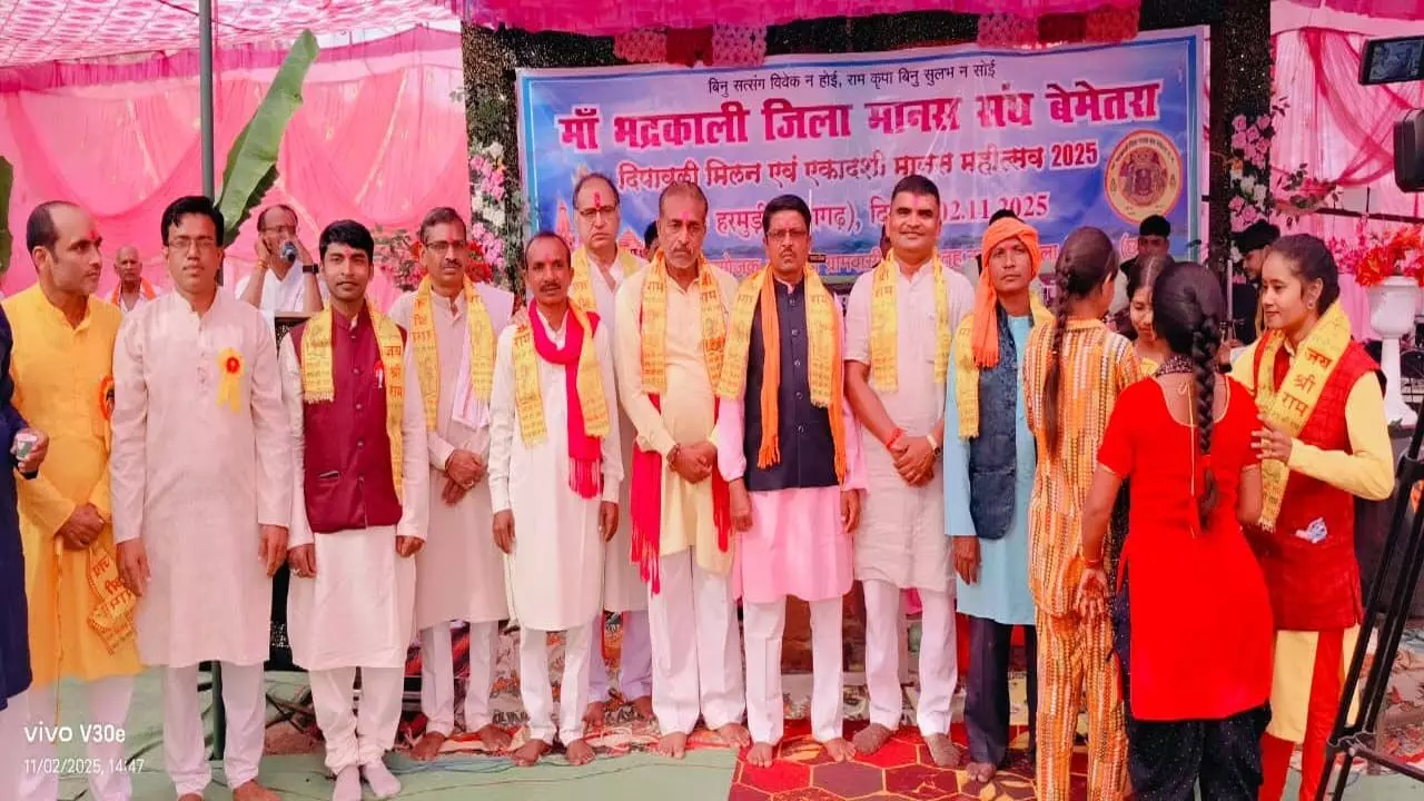 बेमेतरा। छत्तीसगढ़ के बेमेतरा जिले में माँ भद्रकाली जिला मानस संघ के द्वारा दीपावली मिलन समारोह का आयोजन किया गया। 2 नवम्बर ग्राम हरमुड़ी में एकादशी मानस महोत्सव मनाया गया। यह आयोजन प्रभु श्रीरामचंद्र जी की कृपा और दंडी स्वामी श्रीमज्ज्योतिर्मयानंद सरस्वती जी महाराज (सपाद लक्षेश्वरधाम सलधा) के पावन सानिध्य में सम्पन्न हुआ।