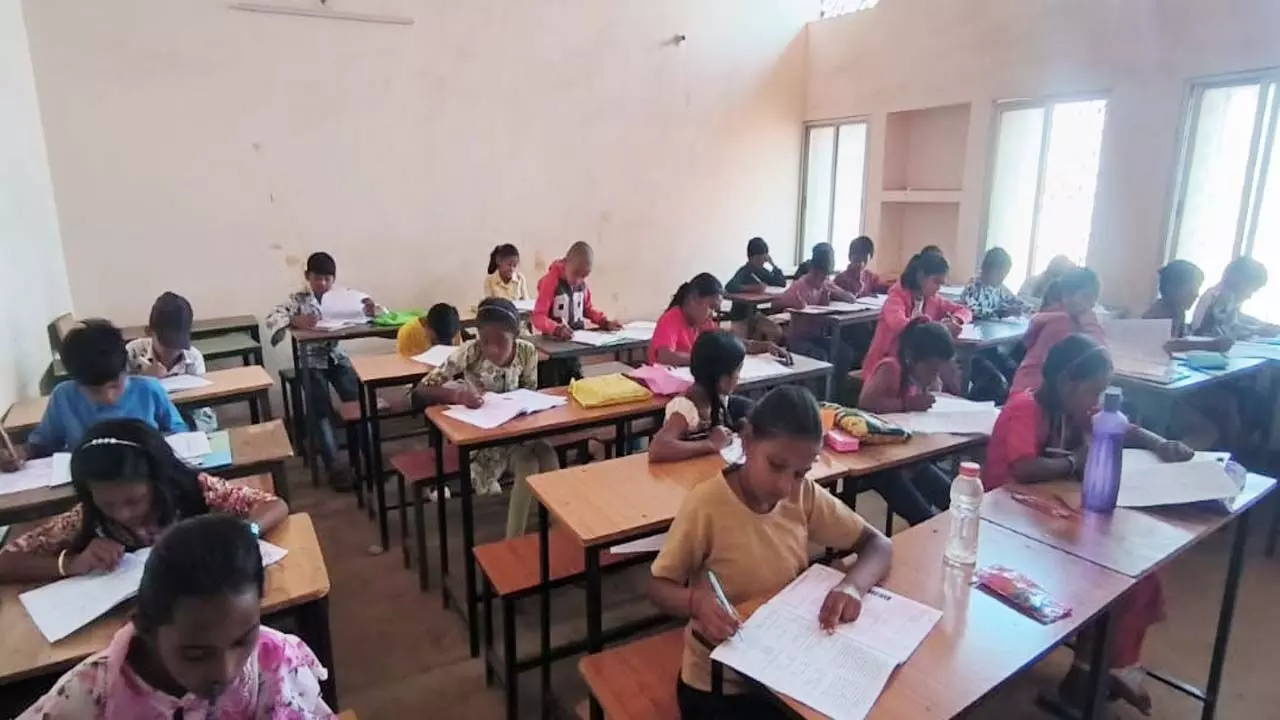 नवोदय मॉक टेस्ट श्रृंखला: स्वामी आत्मानंद स्कूल परपोड़ी में परीक्षा का तीसरा चरण सम्पन्न, बच्चों ने चेक की एक-दूसरे की OMR शीट