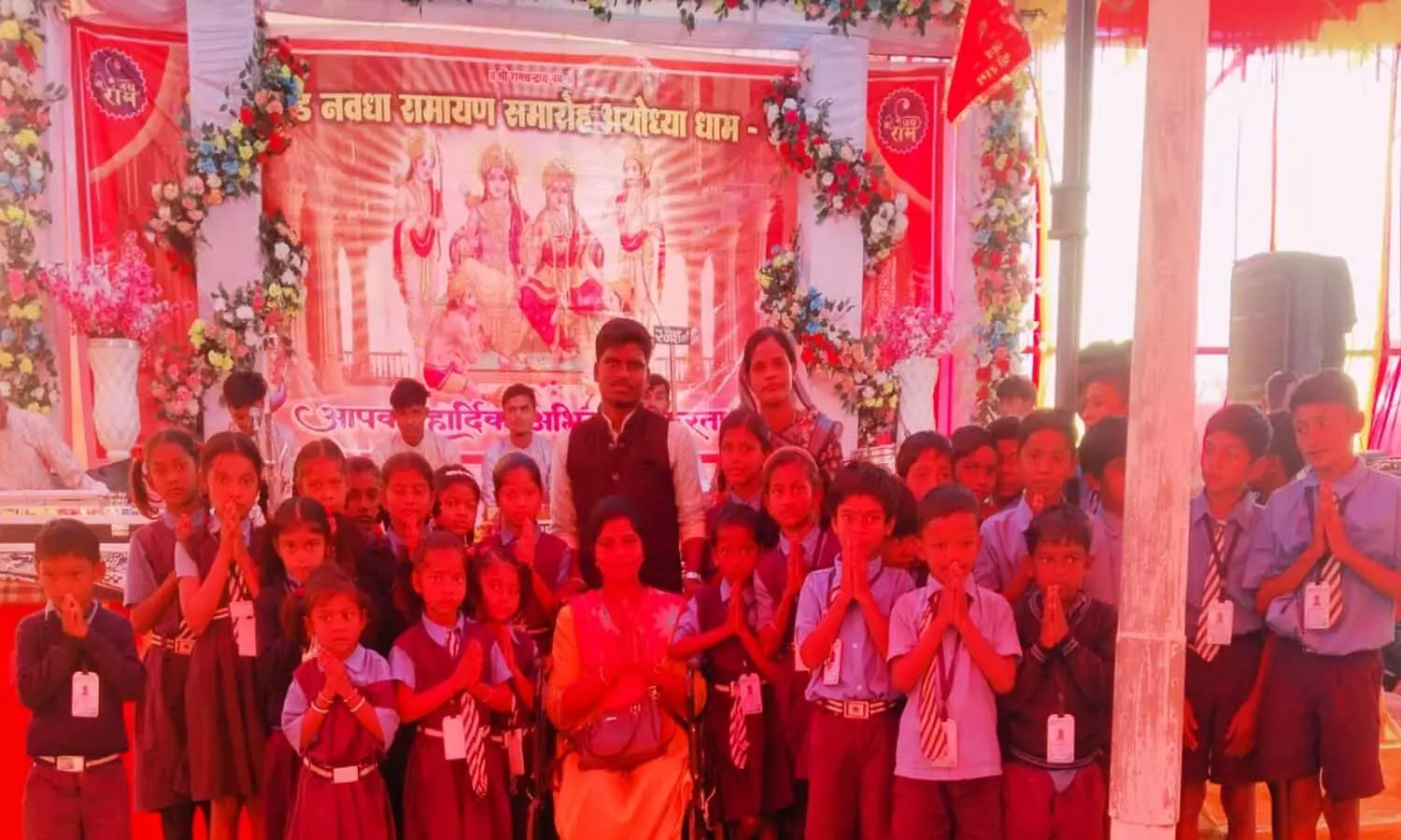 बेमेतरा में तीन दिवसीय अखंड रामायण: बच्चों को लेकर पहुंची सरकारी स्कूल की प्रधान पाठिका हिम कल्याणी