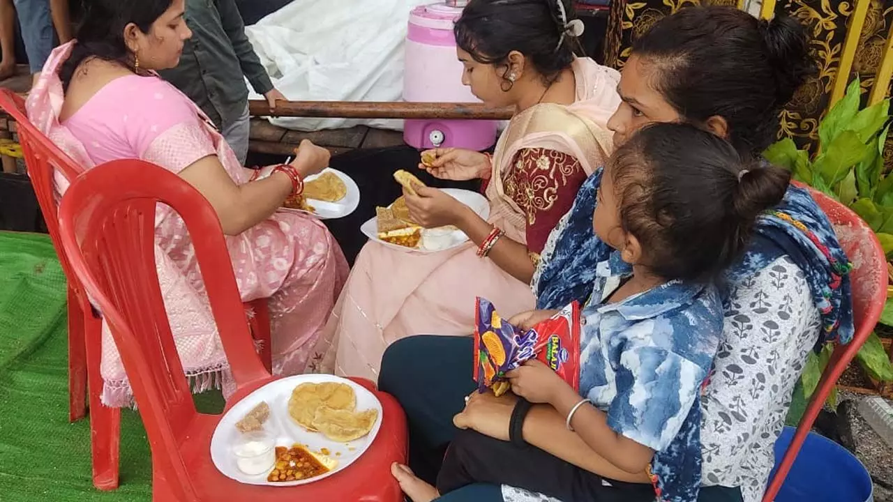 तिरंगा चौक में लगा भंडारा: श्री श्री मां आदि शक्ति दुर्गा उत्सव समिति का आयोजन, सैकड़ों श्रद्धालुओं ने ग्रहण किया प्रसाद