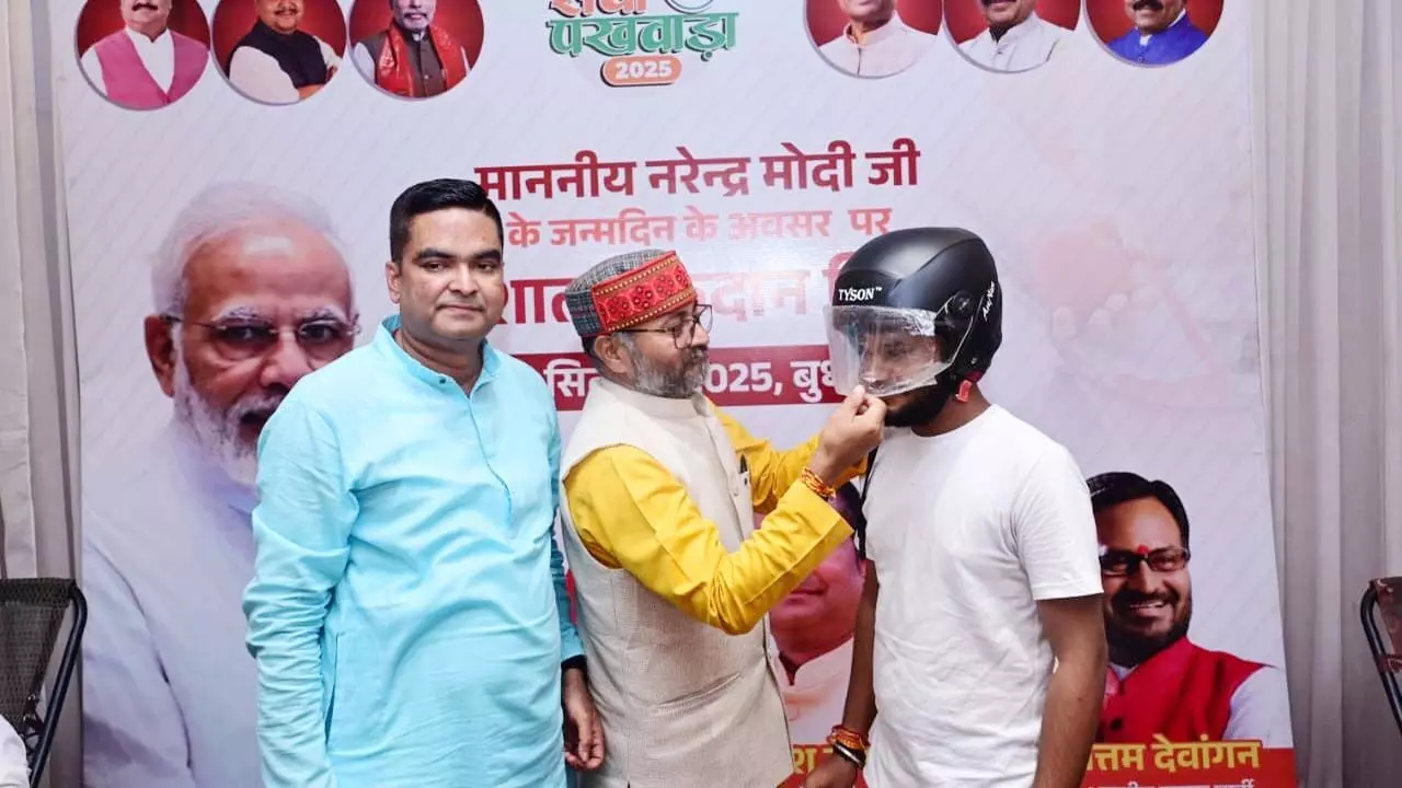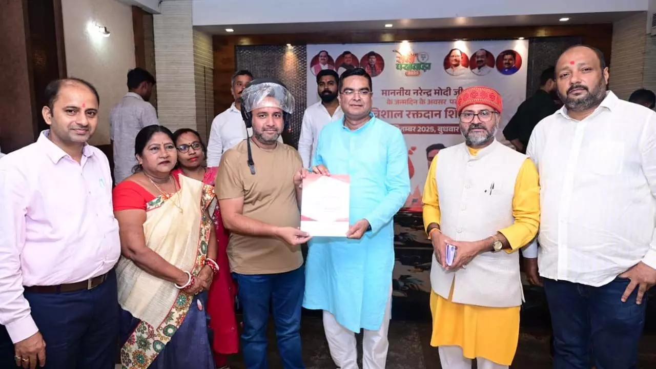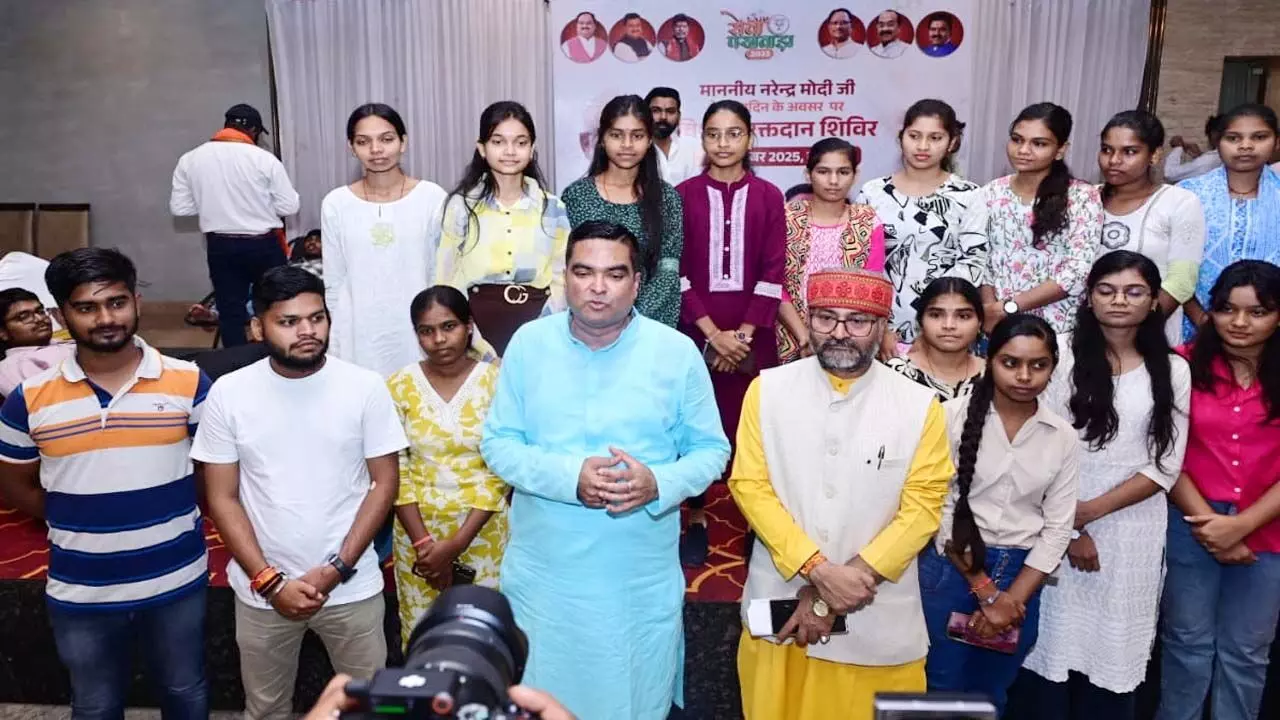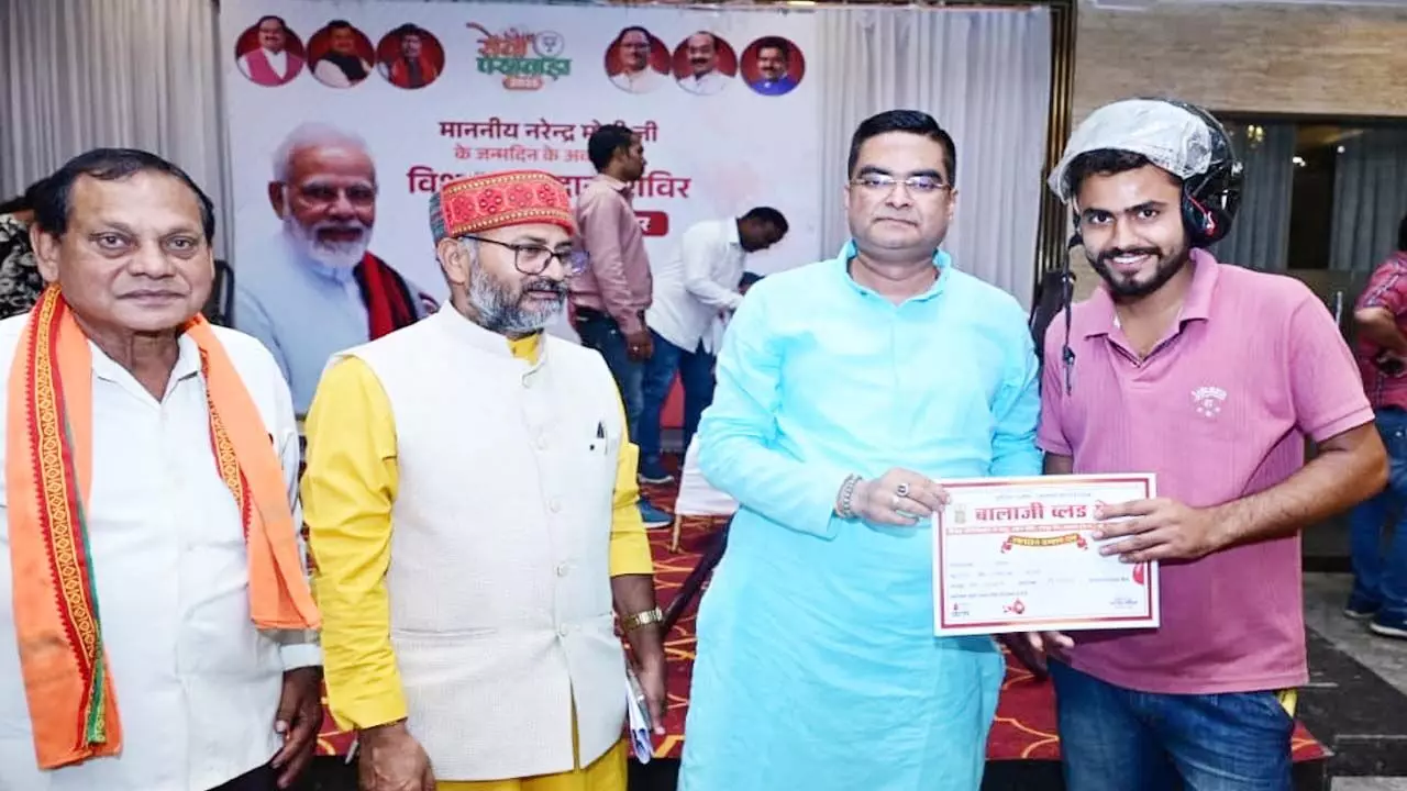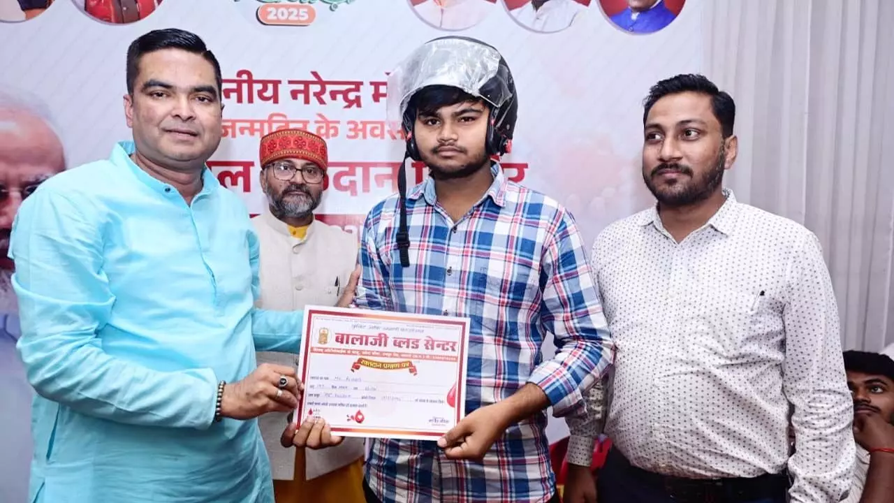पीएम मोदी के जन्मदिन पर रक्तदान शिविर: युवा रक्तदाताओं की उमड़ी भीड़, विधायक रिकेश सेन ने भेंट किया हेलमेट