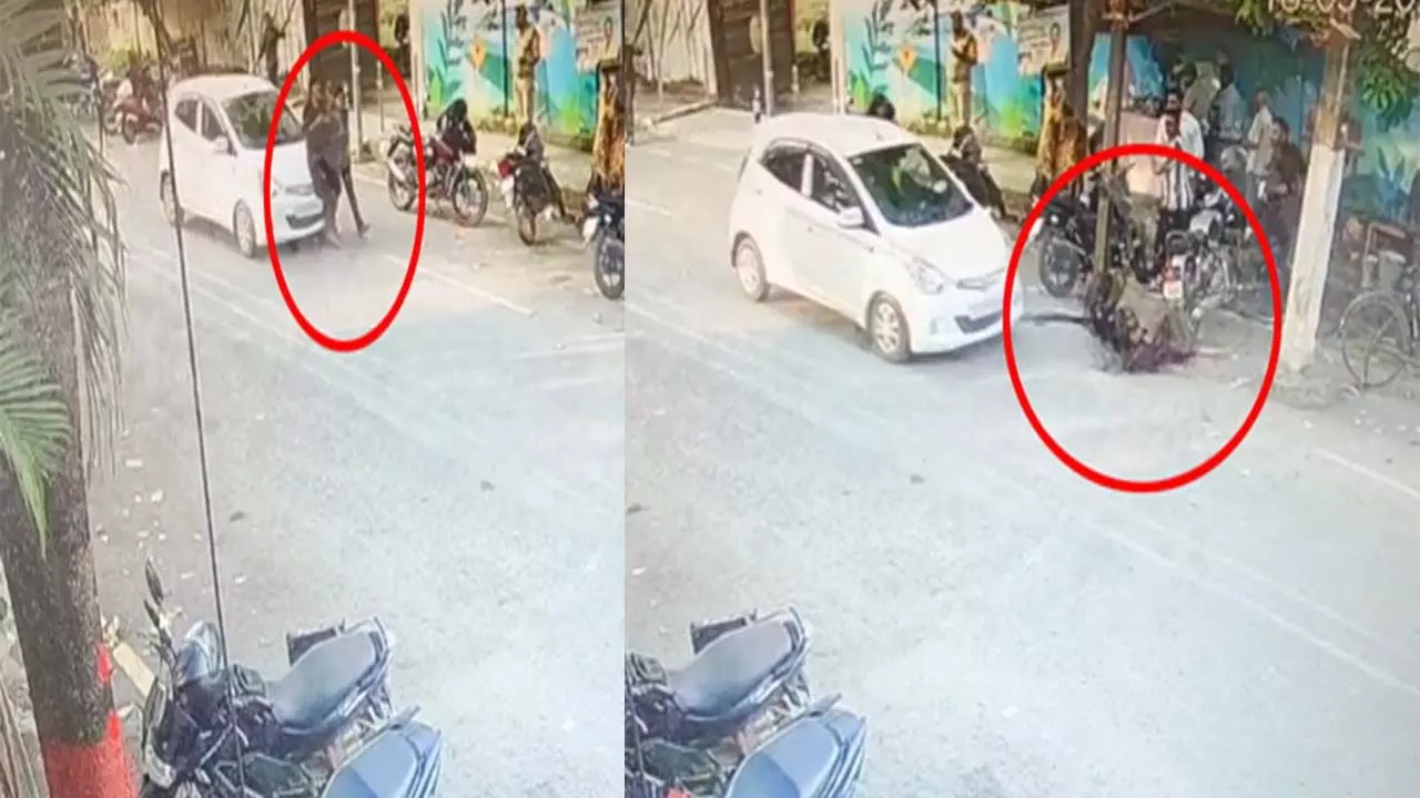बेकाबू कार ने दो छात्राओं को मारी टक्कर: देखिए CCTV फुटेज, कितनी दूर जाकर गिरी छात्रा