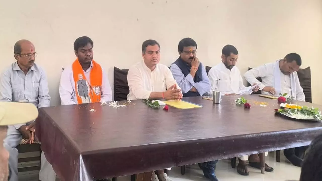 सेवा पखवाड़ा को लेकर चर्चा करते हुए भाजपा कार्यकर्ता