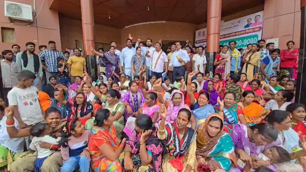 जीवानंद हलधर- जगदलपुर। छत्तीसगढ़ के जगदलपुर में रेलवे की जमीन पर सालों से कब्जा कर झुग्गी बस्ती बनाकर रहने वाले 32 परिवार के घरों पर शनिवार को बुलडोजर चलाकर ढहा दिया गया। जिसके बाद अब पीड़ित परिवारों ने निगम दफ्तर के बाहर मोर्चा खोल दिया है छोटे- छोटे बच्चों को लेकर पहुंचे लोगों ने प्रशासन के खिलाफ जमकर नारेबाजी की।