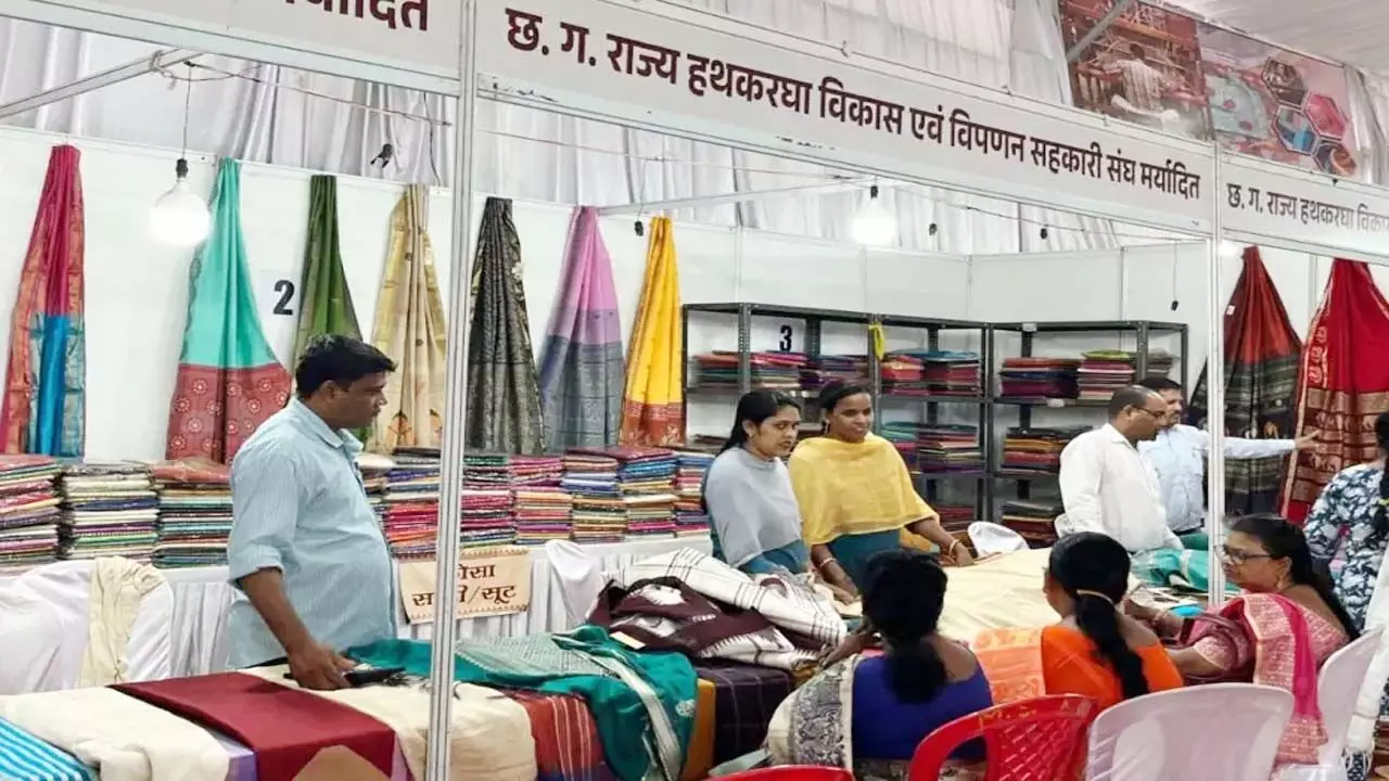 बुनकर खादी वस्त्र तैयार करते हुए मुख्यमंत्री विष्णु देव साय
