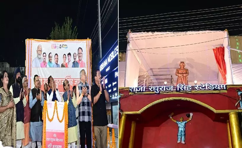 बिलासपुर। छत्तीसगढ़ के सीएम विष्णुदेव साय ने शनिवार को बिलासपुर प्रवास के दौरान शहर के मध्य स्थित रघुराज स्टेडियम में दानदाता गोंड राजा रघुराज सिंह जगत की आदमकद प्रतिमा का अनावरण किया। पंडरिया जमींदारी के राजा रघुराज सिंह जगत द्वारा शहर के बीचो- बीच दान की गई लगभग 5 एकड़ भूमि पर इस ऐतिहासिक स्टेडियम का निर्माण किया गया है। क्रिकेट सहित कई इनडोर खेल प्रतियोगिताएं इसमें आयोजित होती हैं।