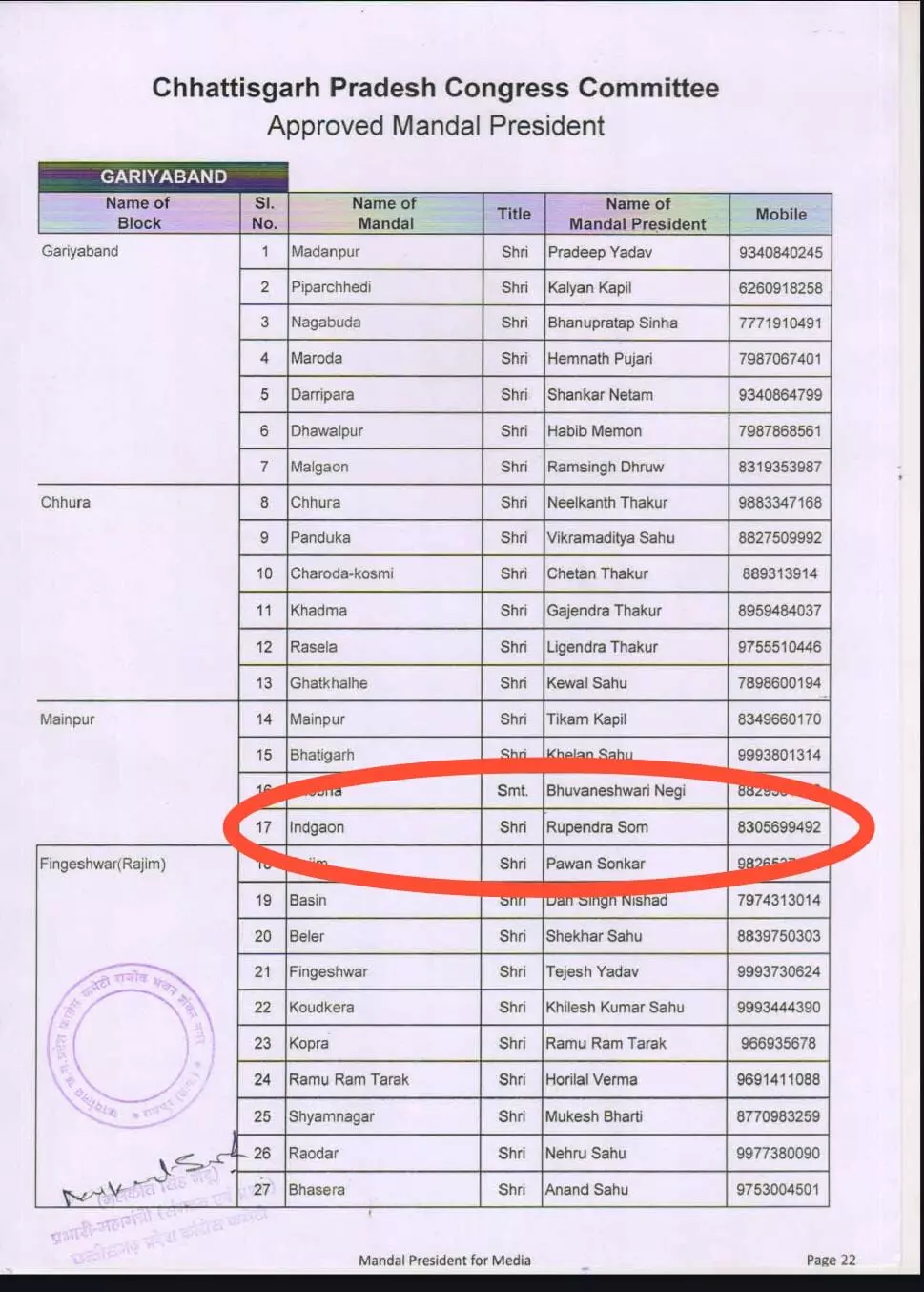 रायपुर। छत्तीसगढ़ के सियासी गलियारे में एक मजेदार लापरवाही सामने आई है। जब कांग्रेस ने गरियाबंद जिले में कांग्रेस ने मृतक रूपेंद्र सोम को मंडल अध्यक्ष बना दिया। बताया जा रहा है कि, 22 अगस्त 2025 को उनका निधन हो चुका है। जिसके बाद सोशल मिडिया पर लोग तरह- तरह के रिएक्शन दे रहे हैं।