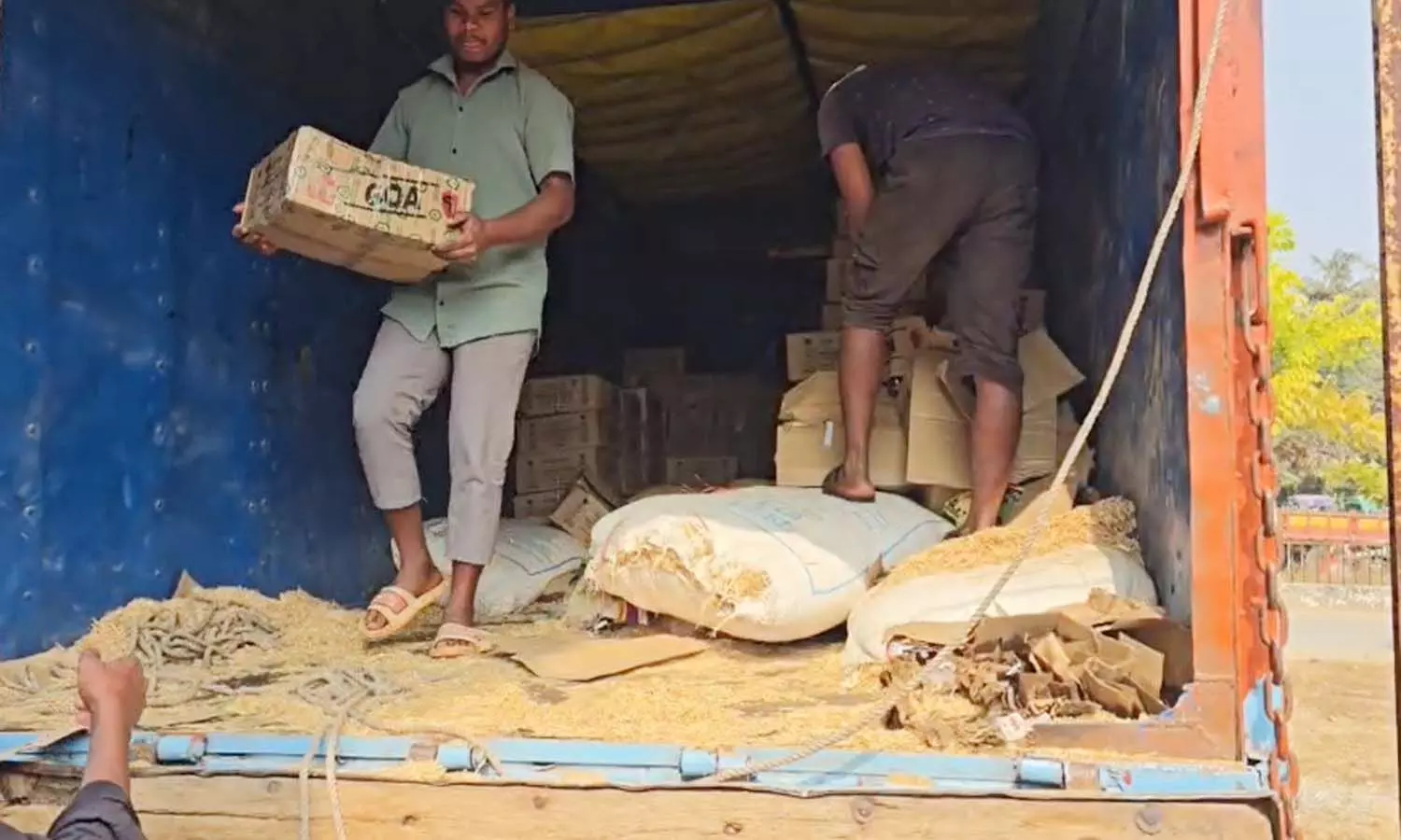 पंकज भदौरिया- दंतेवाड़ा। छत्तीसगढ़ के दंतेवाड़ा जिले में आबकारी विभाग ने 20 लाख की अवैध शराब जंगल से जब्त की गई है। MP के धार जिले से सैकड़ो पेटियां अंग्रेजी शराब मध्यप्रदेश के धार जिले से दंतेवाड़ा पहुँची थी। आरोपी ट्रक पर फर्जी नम्बर की दो प्लेट लगाकर और सामने भूसा भरकर पहुंचे। आबकारी टीम मौके पर पहुंची, वहां मौजूद तस्कर अंधेरे और जंगल का फायदा उठाकर फरार हो गए।