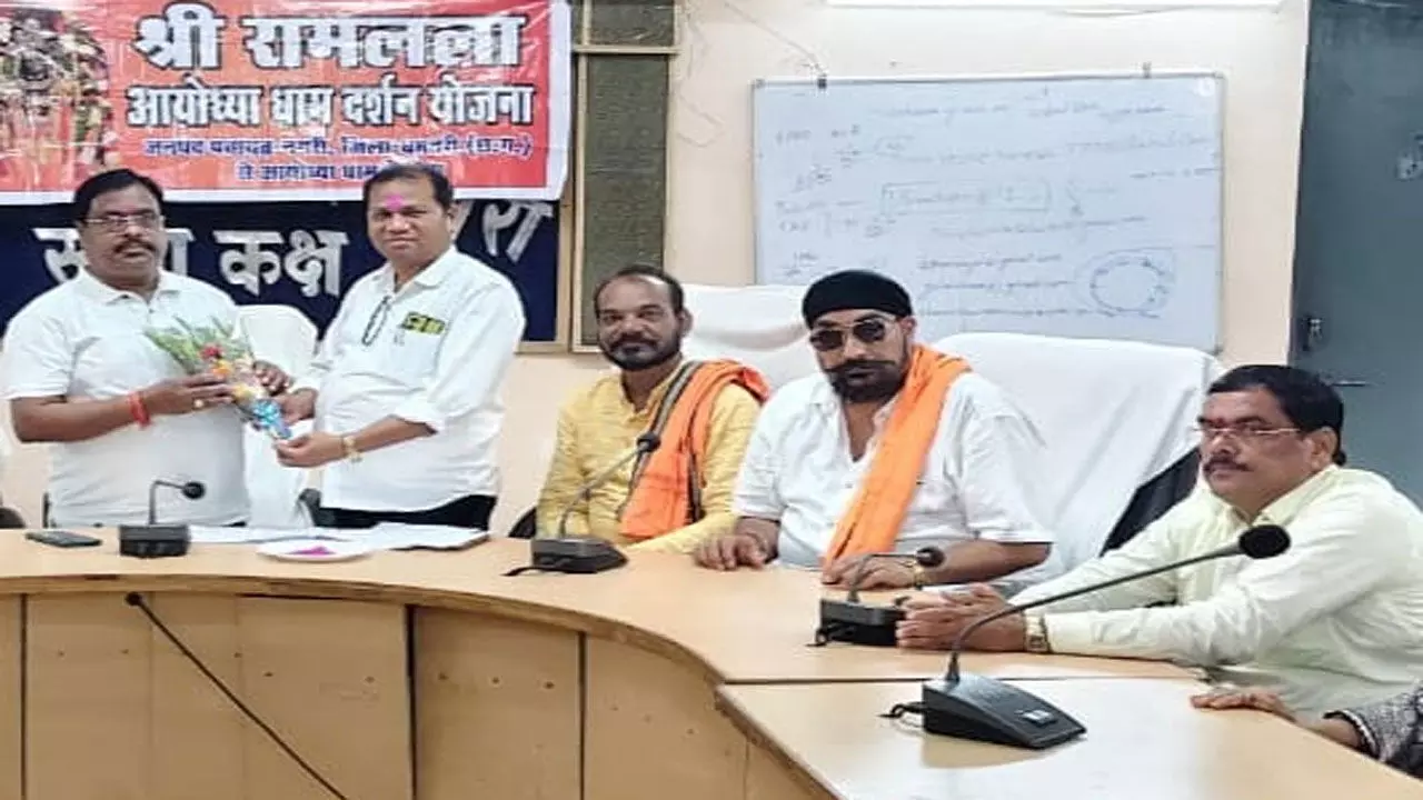 गोपी कश्यप- नगरी। छत्तीसगढ़ के नगरी समेत धमतरी जिले के श्रद्धालु अयोध्या धाम रवाना हुए। इस दौरान भाजपा जिला अध्यक्ष प्रकाश बैस ने हरी झंडी दिखाकर रवाना किया। कुल 31 श्रद्धालु विशेष बस के माध्यम से रायपुर रेलवे स्टेशन पहुंचे, जहाँ से वे अयोध्या धाम के लिए प्रस्थान करेंगे। मुख्यमंत्री विष्णु देव साय की पहल से श्री रामलला दर्शन योजना के तहत सभी श्रद्धालुओं को अयोध्या धाम रवाना किया गया।