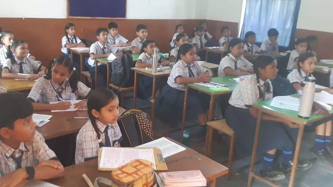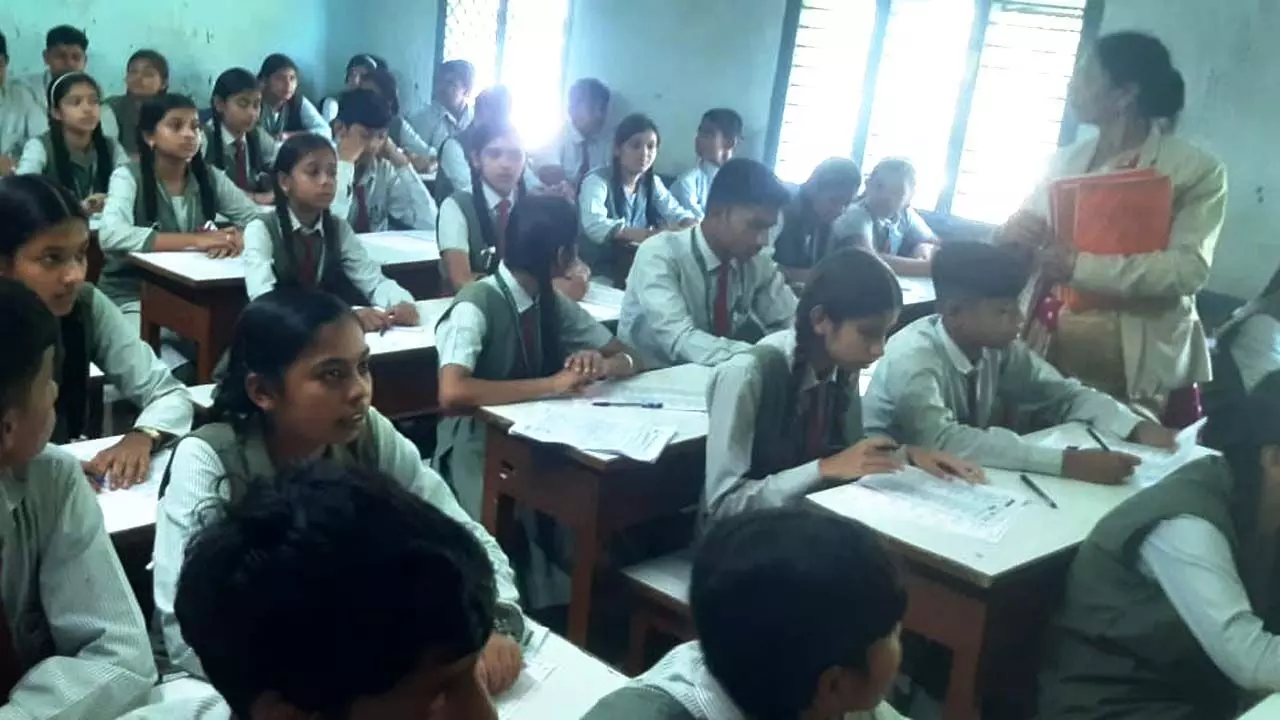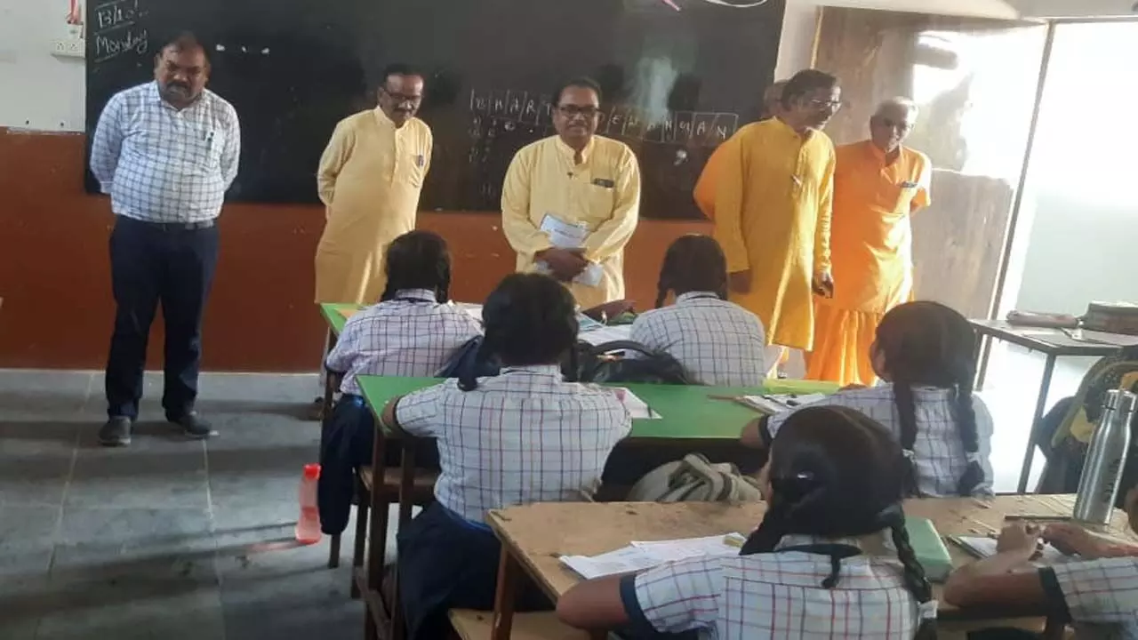 भारतीय संस्कृति ज्ञान परीक्षा देते विद्यार्थी