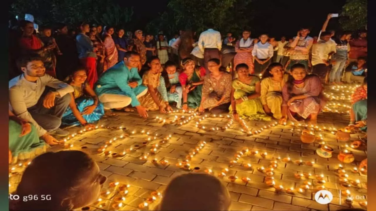 2,100 दीपों से जगमगाया कंडेल कॉलेज: नएसएस, रेडक्रॉस, रेड रिबन के संयुक्त प्रयास से मनाया दीपोत्सव