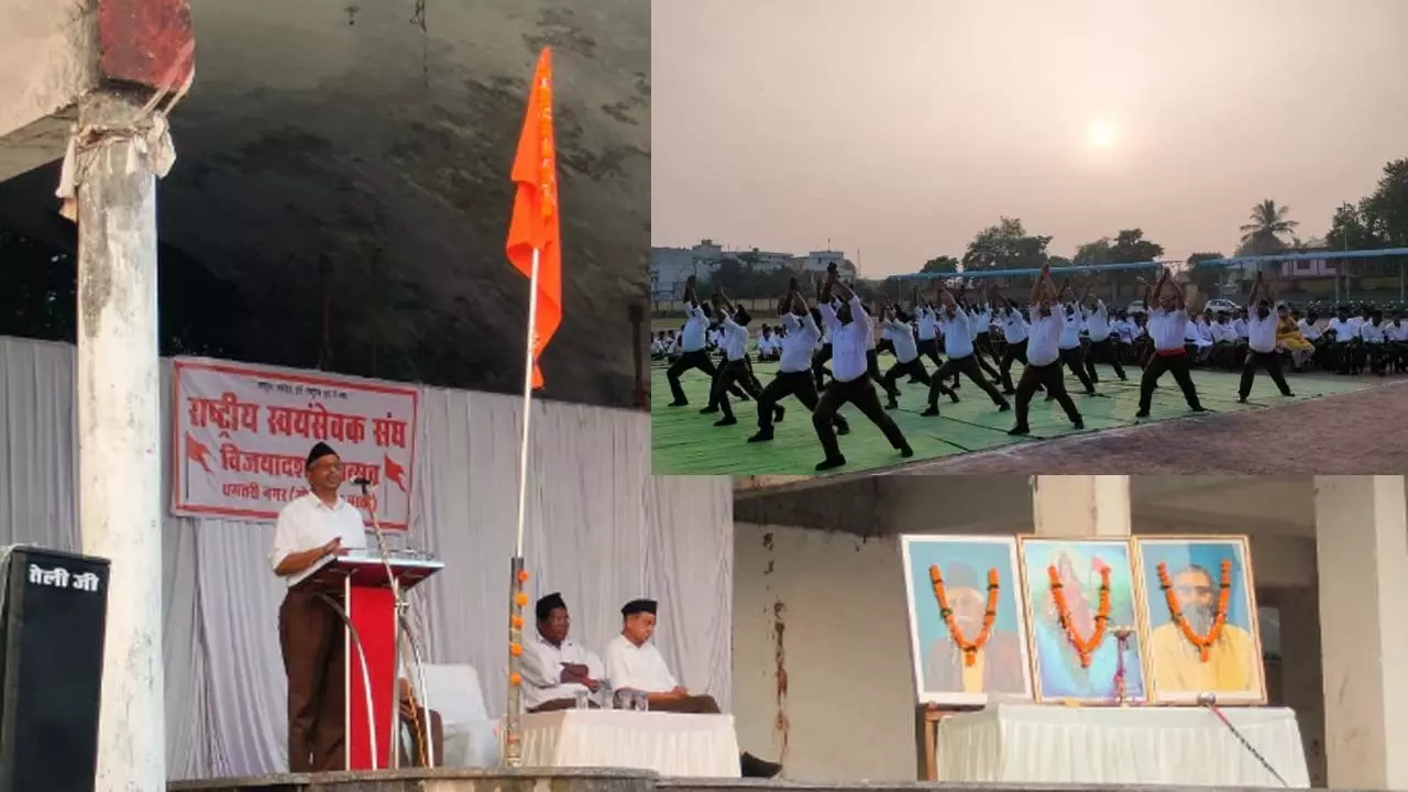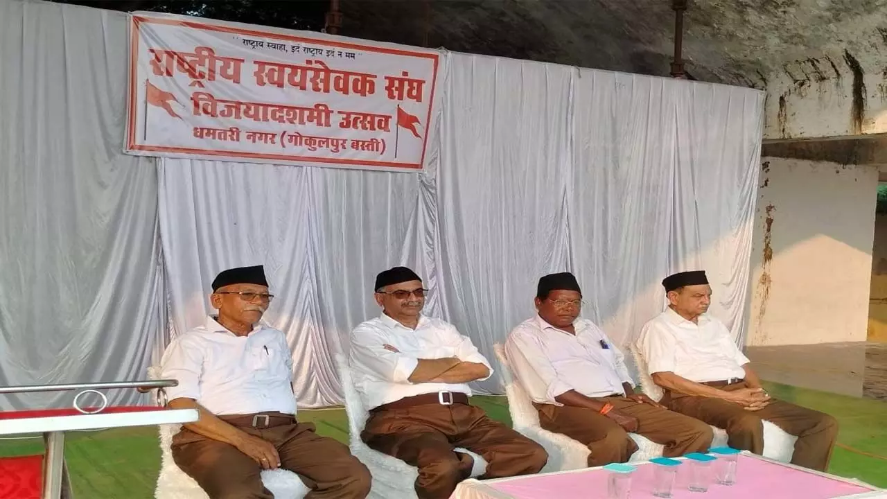 उमेश सिंह बशिस्ट - धमतरी। राष्ट्रीय स्वयंसेवक संघ (RSS) के शताब्दी वर्ष के उपलक्ष्य में गोकुलपुर बस्ती में विजयदशमी उत्सव और पथ संचलन का भव्य आयोजन किया गया। कार्यक्रम एकलव्य खेल मैदान में दोपहर 1 बजे प्रारंभ हुआ, 2:30 बजे सभी स्वयंसेवक एकत्रित हुए और प्रार्थना के साथ कार्यक्रम का औपचारिक शुभारंभ हुआ, तत्पश्चात स्वयंसेवकों ने अनुशासन और एकता का परिचय देते हुए पथ संचलन में भाग लिया।