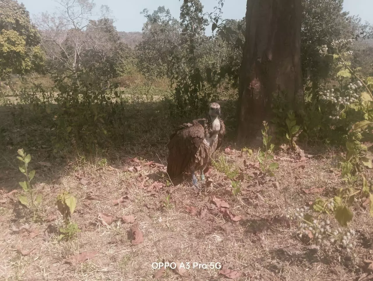 सीतानदी टाइगर रिजर्व में मिला बीमार दुर्लभ गिद्ध: महाराष्ट्र के ताडोबा से 400 किलोमीटर की उड़कर पहुंचा, उपचार शुरू