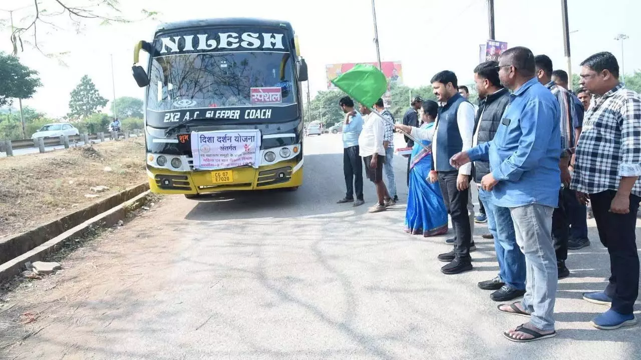 दिशा दर्शन योजना: धरसीवां से 50 महिला तीर्थ यात्रियों की बस को विधायक अनुज शर्मा हरी झंडी दिखाकर किया रवाना