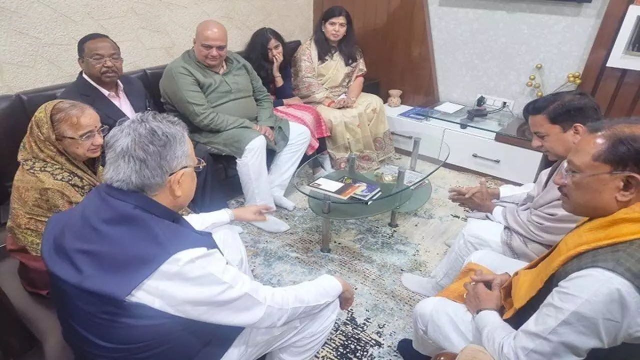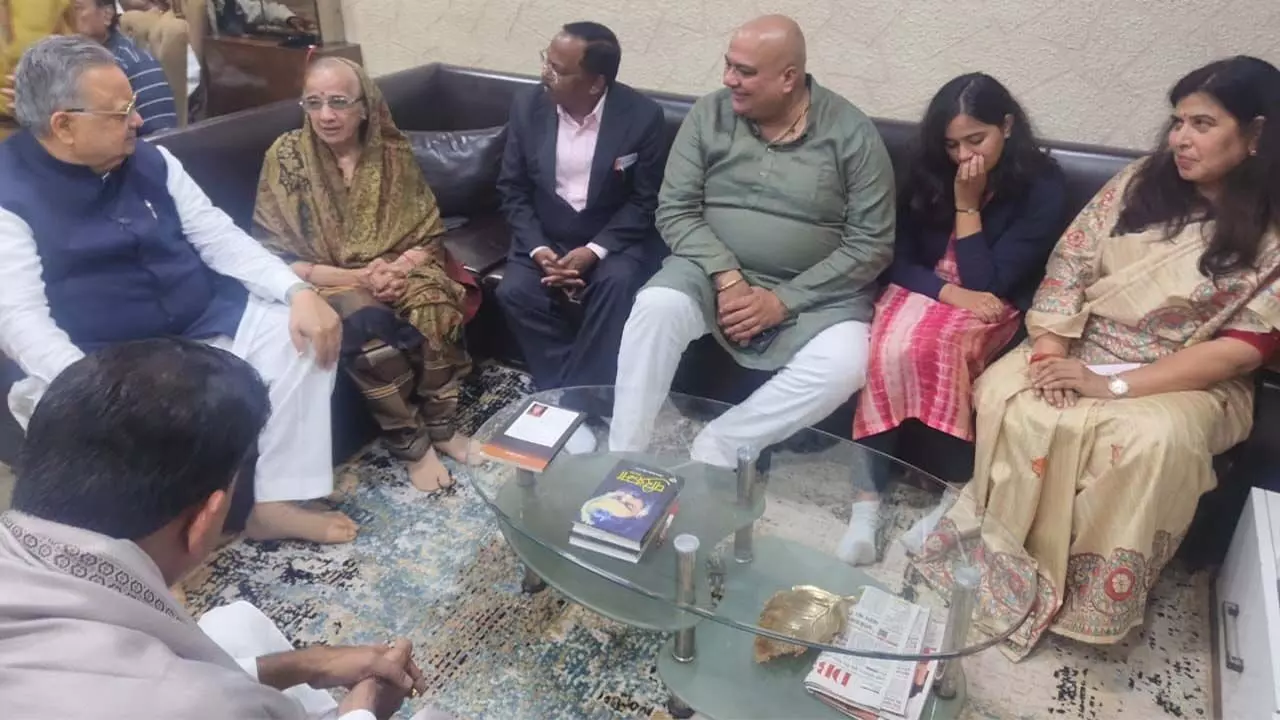 रायपुर। हरिभूमि समाचार पत्र और INH 24x7 मीडिया समूह के प्रधान संपादक डॉ. हिमांशु द्विवेदी के ग्वालियर स्थित आवास पर शुक्रवार को छत्तीसगढ़ विधानसभा के अध्यक्ष डॉ. रमन सिंह और मुख्यमंत्री विष्णुदेव साय पहुंचे। उनके साथ कृषि मंत्री रामविचार नेताम, बीजेपी की राष्ट्रीय उपाध्यक्ष, पूर्व सांसद सरोज पांडे भी थीं।