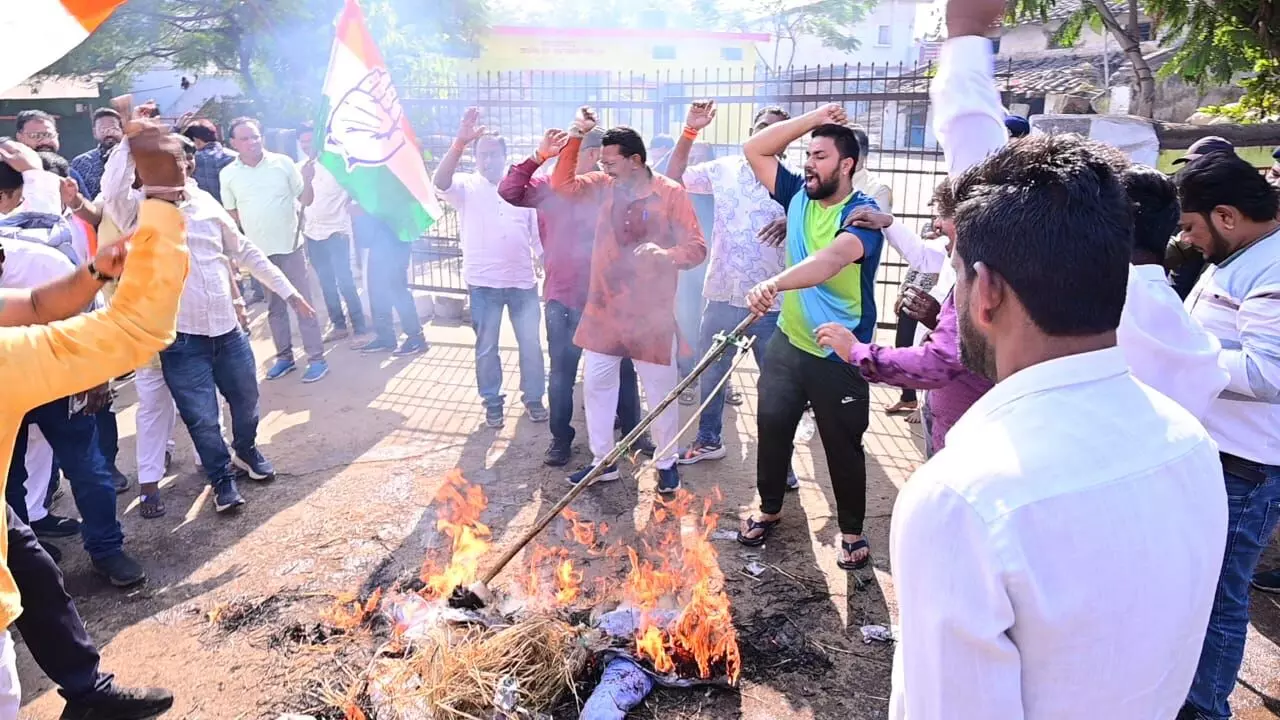 किसान ने की आत्महत्या की कोशिश: कांग्रेसियों ने फूंका सरकार का पुतला, विरोध में जमकर लगाए नारे