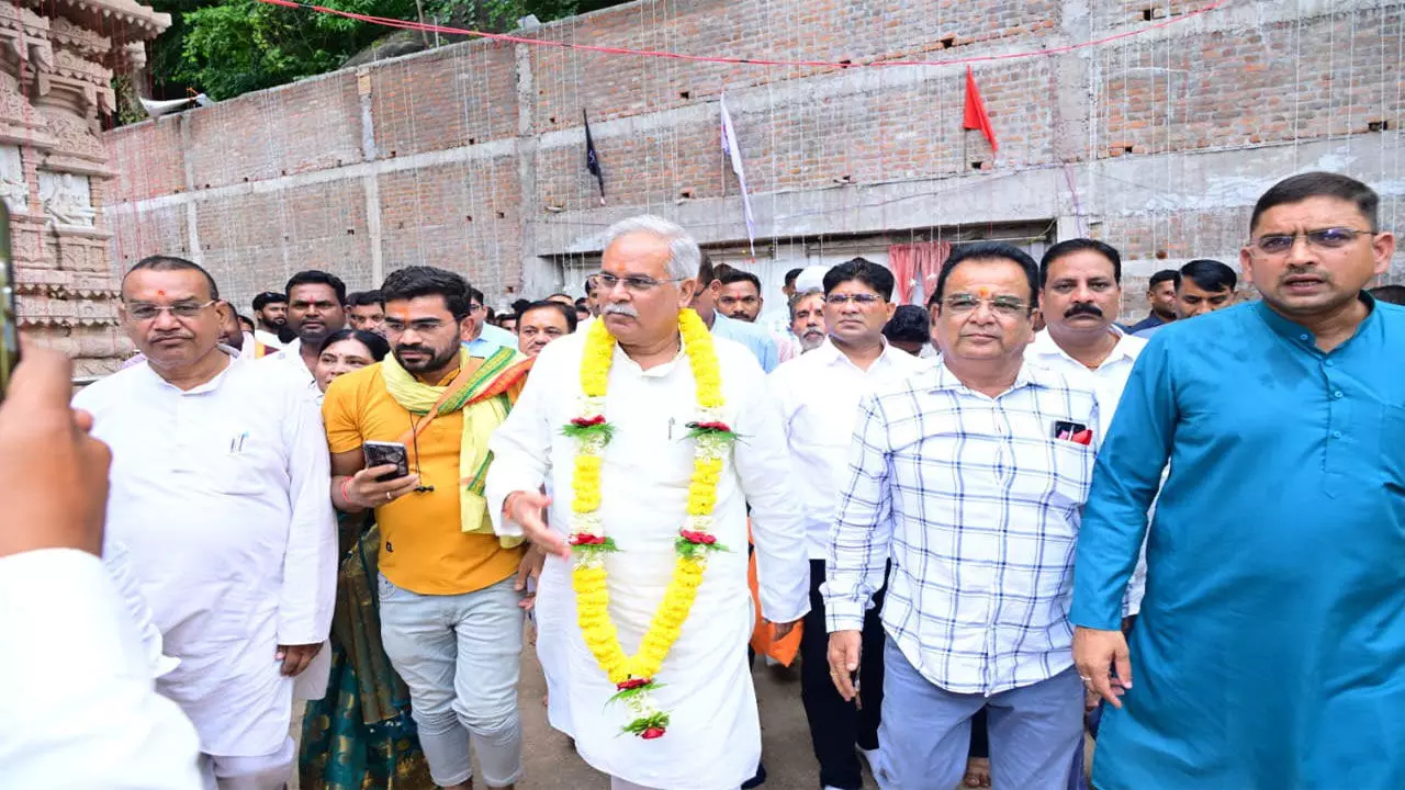 मां बम्लेश्वरी मंदिर में पूजा करते हुए पूर्व सीएम बघेल