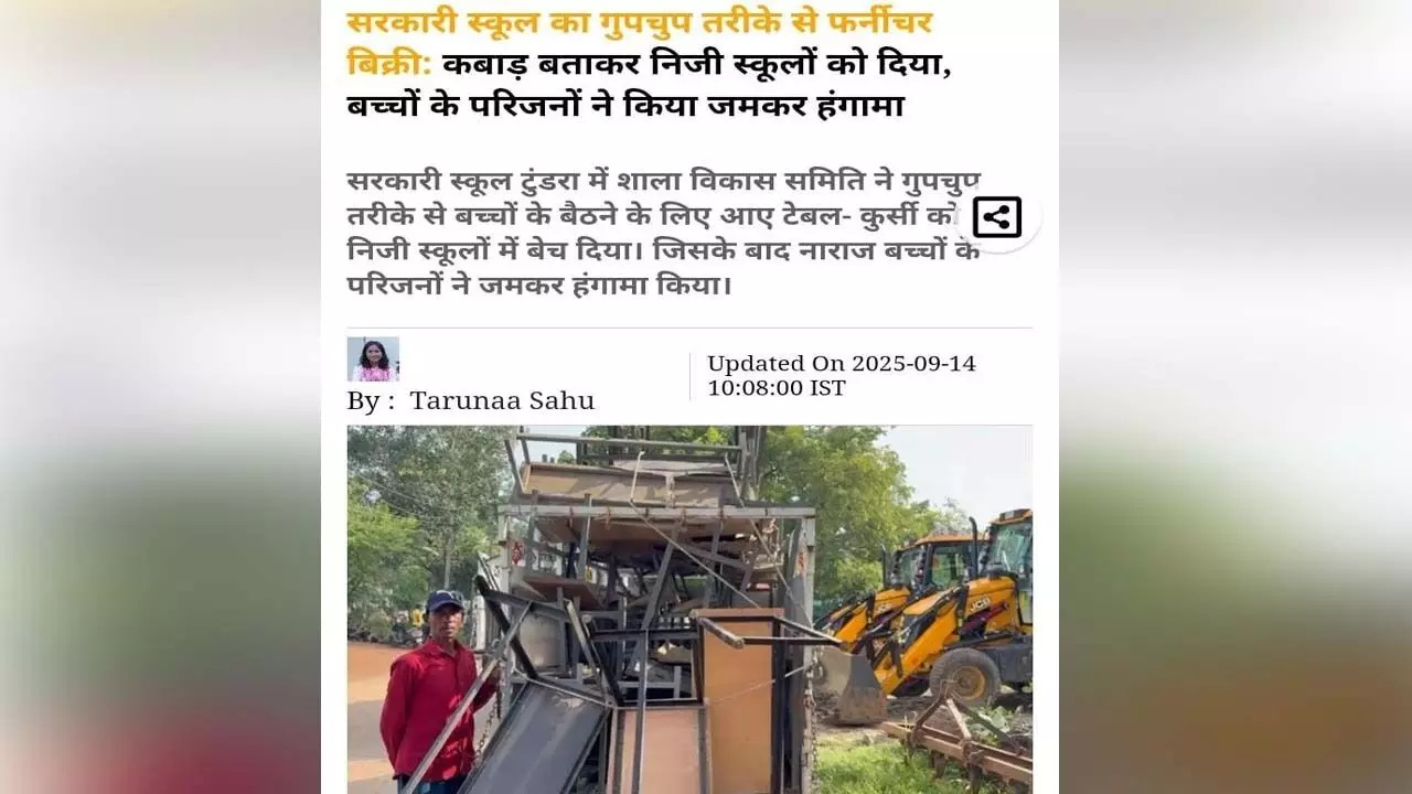 उल्लेखनीय है कि, हरिभूमि डॉट कॉम ने इस खबर को प्रमुखता से प्रकाशित किया था। जिसके बाद अब मामले में कलेक्टर सोनी ने स्वत: संज्ञान लिया है। जिले के माध्यमिक विद्यालय टुंडरा की प्रभारी प्राचार्य और शाला विकास समिति ने गुपचुप तरीके से प्रस्ताव तैयार कर स्कूल में बच्चों के बैठने के लिए आए टेबल कुर्सी को निजी स्कूलों में 400 रुपए प्रति नग के हिसाब से बिक्री कर दिया। मामले का तूल पकड़ता देख निजी स्कूलों ने शासकीय स्कूल से खरीदे टेबल कुर्सी को 3 वाहनों में भरकर वापस भेज दिया था।