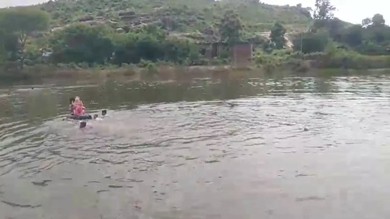 गणेश विसर्जन के समय गहरे पानी में समाया व्यक्ति