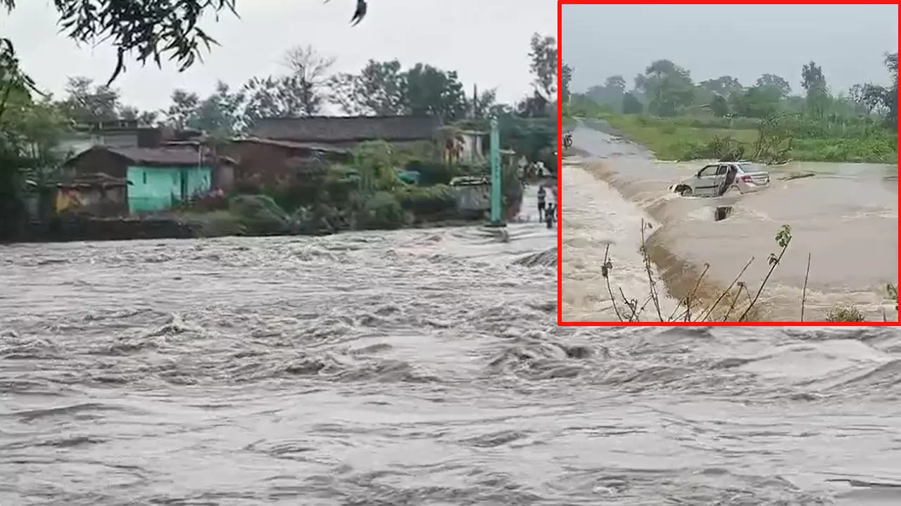 छत्तीसगढ़ में भारी बारिश: सारंगढ़ में नाले में बही कार, तीन लोगों ने कूदकर बचाई जान, राजधानी में भी सड़कें लबालब