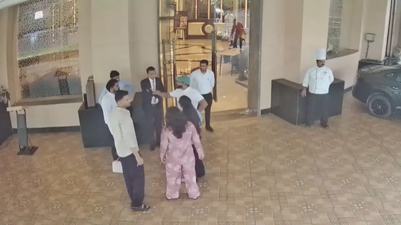 होटल प्रबंधन के साथ बहस करते हुए दो कपल्स
