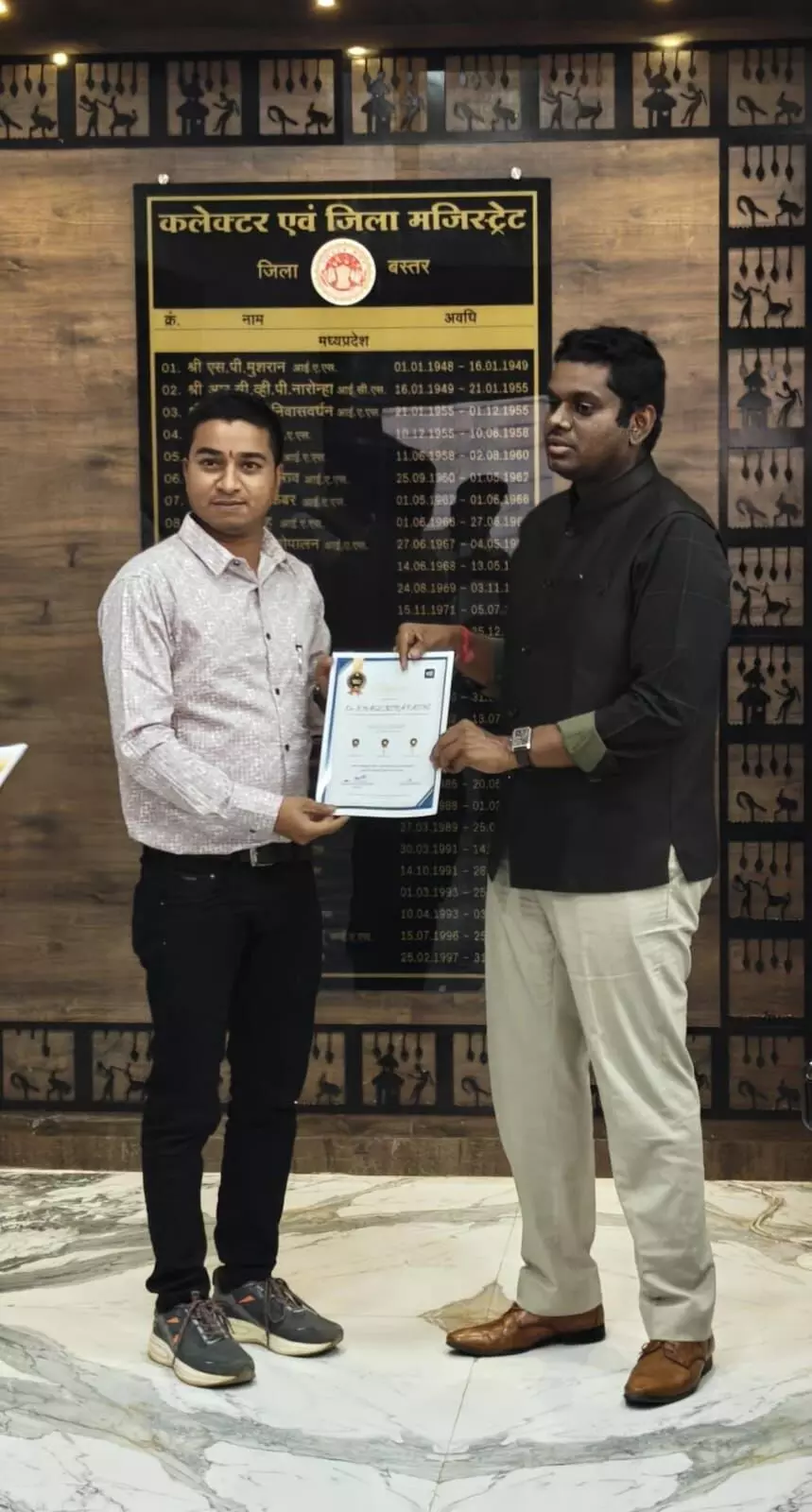 कलेक्टर ने बैग और प्रशस्ति पत्र देकर किया सम्मानित
