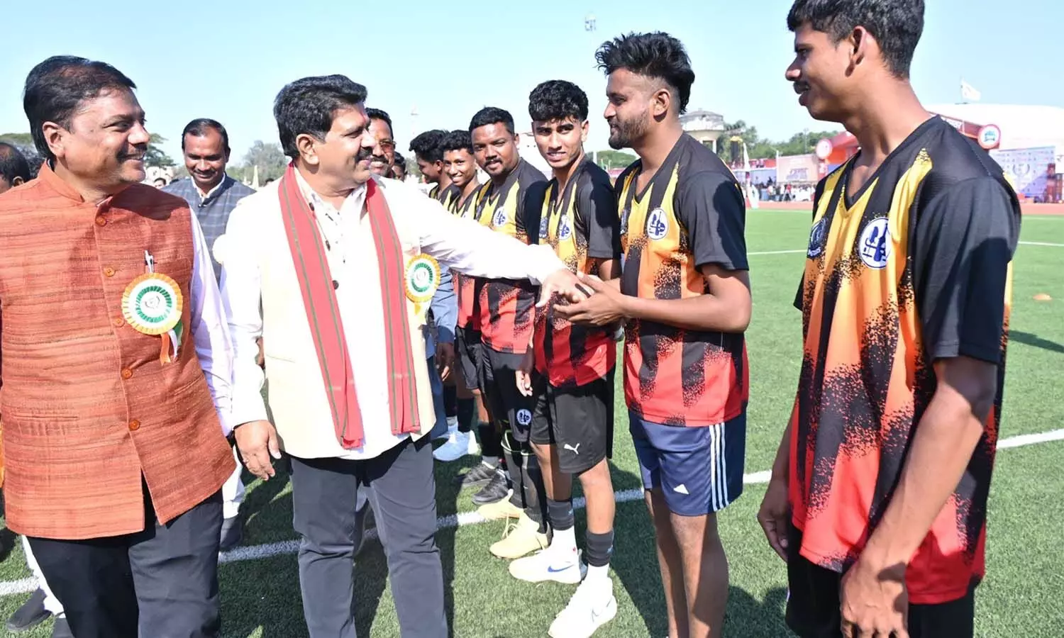 कबड्डी खिलाड़ी विजय डोडी और खो-खो खिलाड़ी सलोनी कवाची ने पूरे उत्साह, ऊर्जा और गौरव के साथ ग्राउंड की परिक्रमा करते हुए मशाल को मुख्य प्रज्वलन स्थल तक पहुंचाया। यह क्षण सुकमा और नारायणपुर जिलों के लिए अत्यंत गौरवपूर्ण और भावनात्मक था - जब माओवाद-प्रभावित एवं दूरस्थ क्षेत्रों के खिलाड़ी आत्मविश्वास के साथ हजारों दर्शकों के सामने दौड़ रहे थे। दर्शकों का उत्साह भी इस दौरान चरम पर पहुंच गया।
