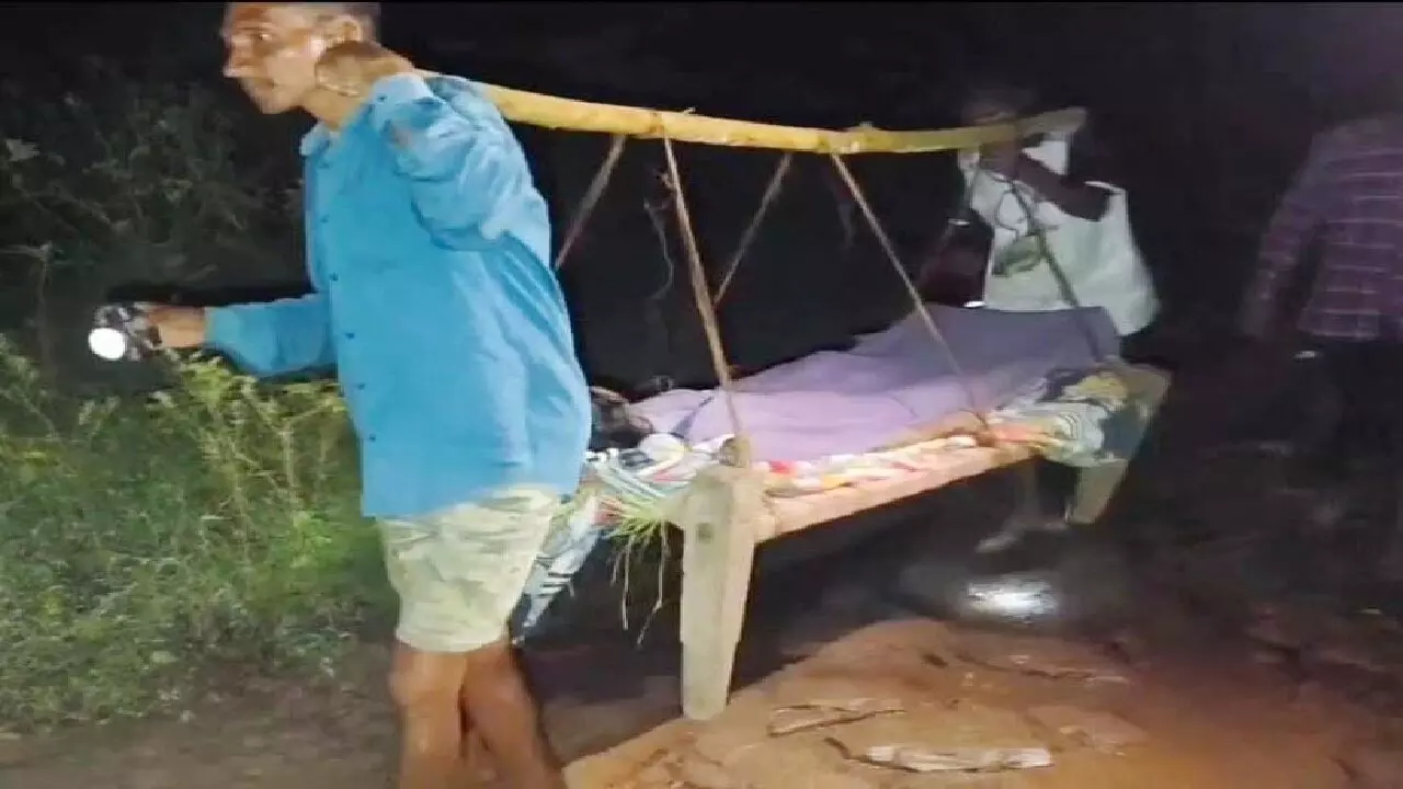 गर्भवती महिला को पैदल अस्पताल लेकर जाते ग्रामीण
