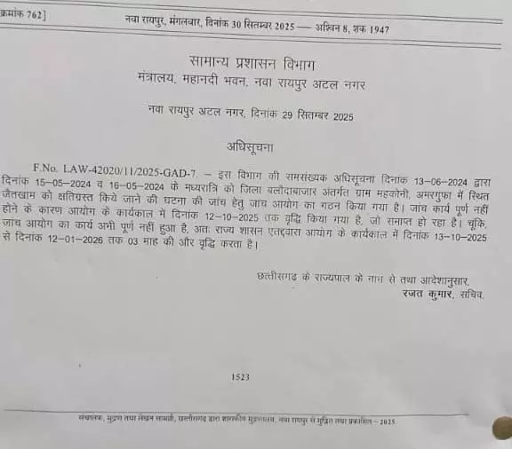 कुश अग्रवाल- बलौदा बाजार। बलौदाबाजार कांड का कारण बने महाकौनी स्थित अमरगुफा में पवित्र जैतखाम को 15 एवं 16 मई 2024 की दरम्यानी रात क्षतिग्रस्त किए जाने की घटना के बाद क्षेत्र में भारी आक्रोश और तनाव की स्थिति उत्पन्न हो गई थी। इस गंभीर घटना को लेकर शासन द्वारा न्यायिक जाँच आयोग का गठन किया गया था।