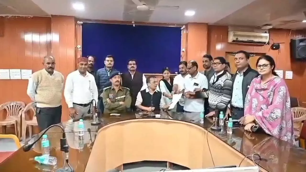कलेक्टर को पत्र सौंपते हुए