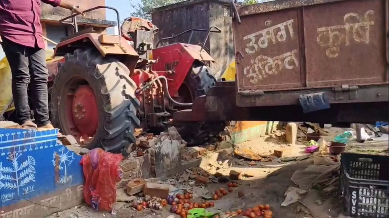 बाउंड्रीवाल तोड़कर कन्याशाला परिसर में घुसा ट्रैक्टर