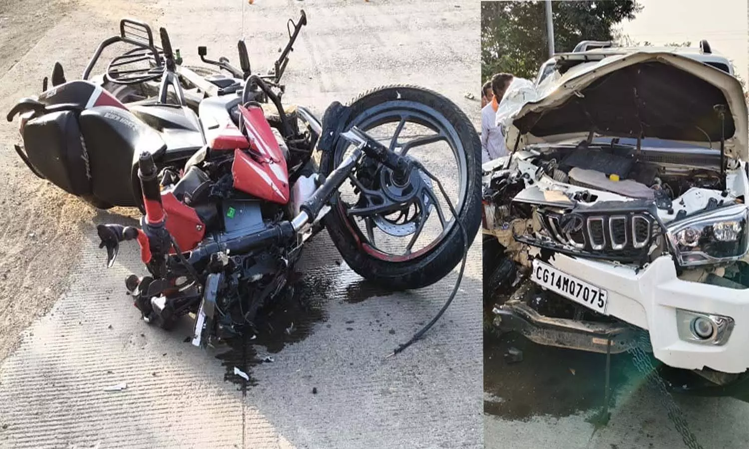 यह दर्दनाक दुर्घटना पत्थलगांव थाना क्षेत्र के NH-43 स्थित कछार गांव के पास हुई, जहां तेज रफ्तार बाइक और स्कॉर्पियो की आमने-सामने जोरदार टक्कर हो गई। टक्कर इतनी भीषण थी कि बाइक पूरी तरह क्षतिग्रस्त हो गई।