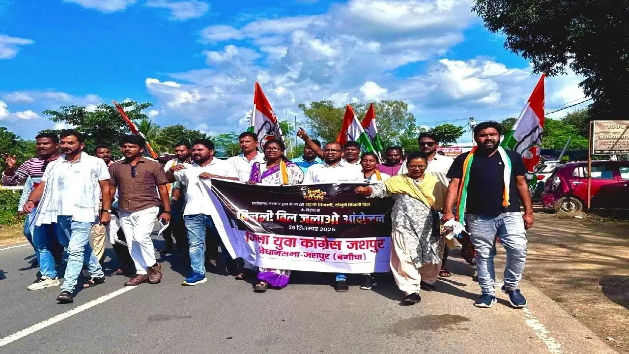 अजय सूर्यवंशी- जशपुर। छत्तीसगढ़ के युवा कांग्रेस अध्यक्ष आकाश शर्मा के निर्देशानुसार पूरे प्रदेश में 'बिजली बिल जलाओ आंदोलन' किया गया। जिसके तहत जशपुर युवा कांग्रेस द्वारा बगीचा तहसील चौक से पदयात्रा कर बिजली ऑफिस के सामने बिजली बिल जला कर बढ़ते दरों का विरोध प्रदर्शन किया गया। आंदोलन के पश्चात बिजली विभाग को ज्ञापन सौंपा गया।