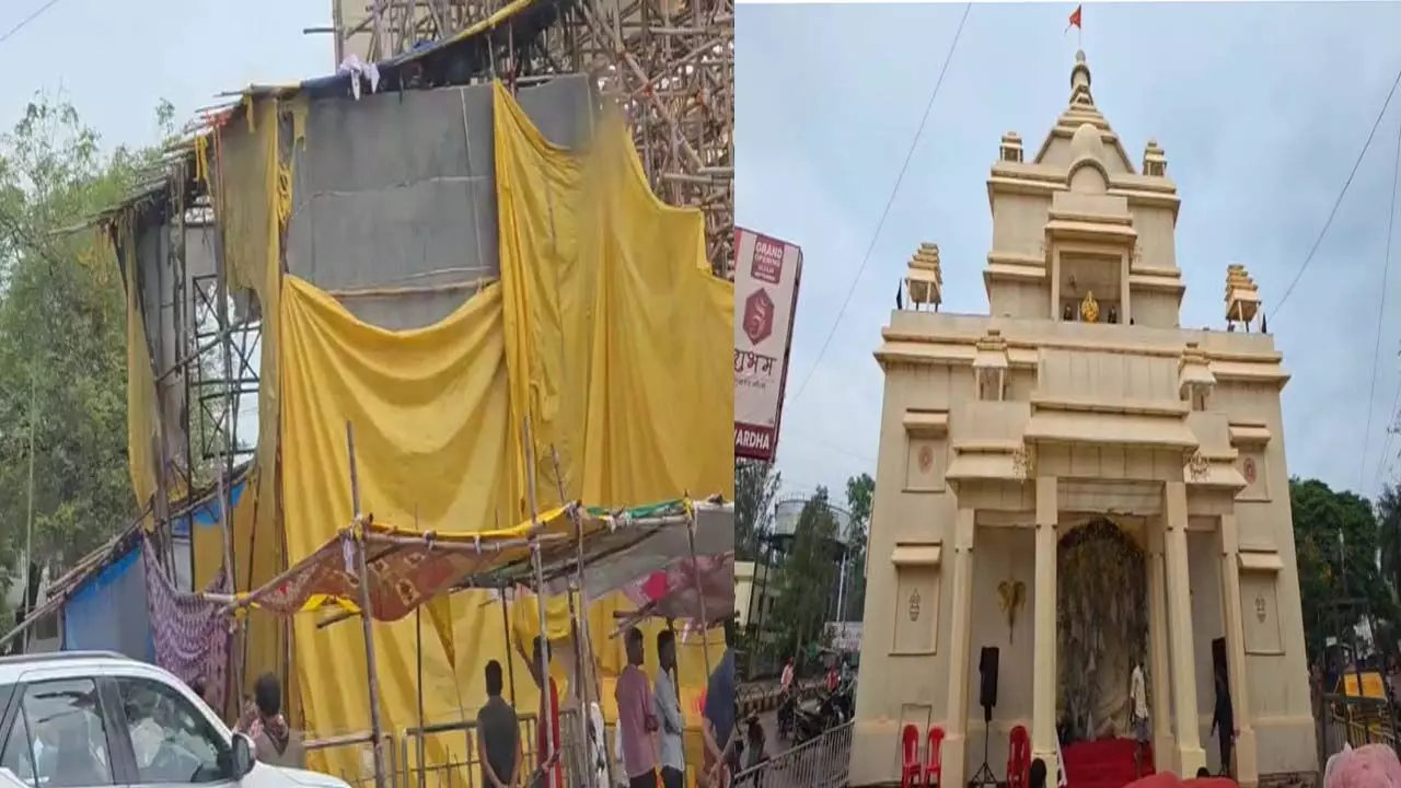 दुर्गा पंडाल में लगी आग: पीछे का हिस्सा जलकर खाक, प्रतिमा भी हुई खंडित