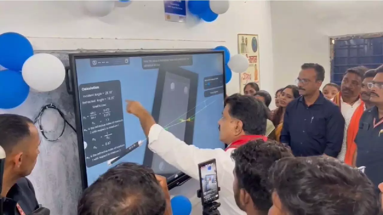 डिजी बोर्ड में बच्चों को पढ़ाते हुए डिप्टी सीएम विजय शर्मा