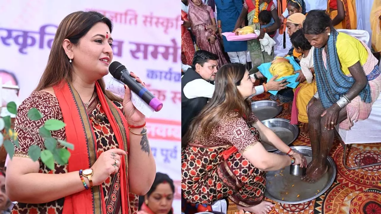 विधायक भावना बोहरा ने आदिवासी लोगों का पैर पखारकर किया स्वागत