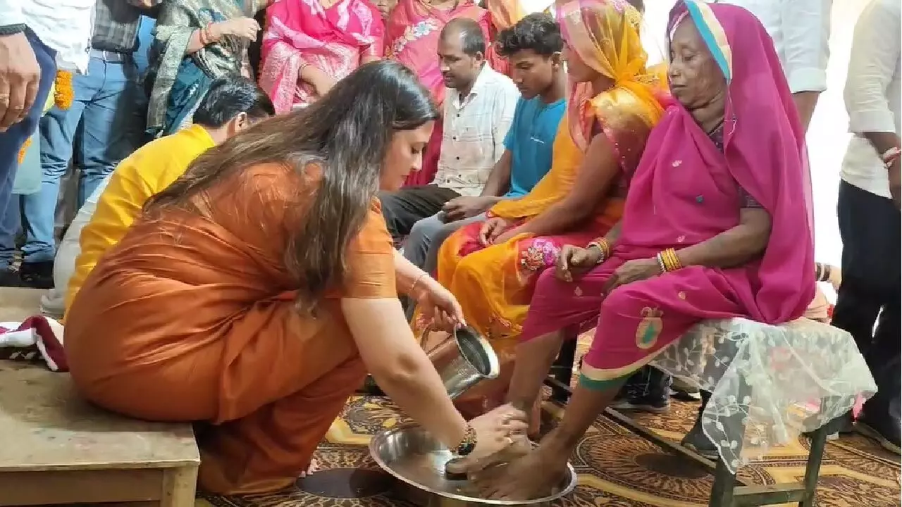 धर्मांतरित महिला के पैर पखारती विधायक भावना बोहरा