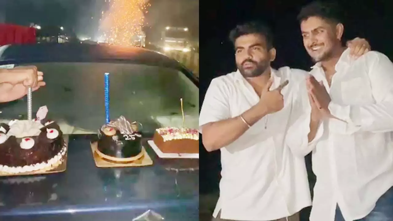 बीच सड़क पर जन्मदिन मनाते हुए युवक