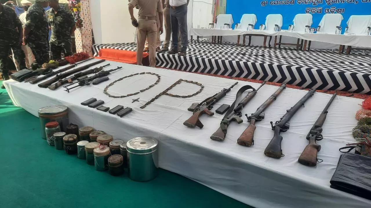 सरेंडर करने वाले नक्सलियों ने अपने साथ एक Ak47 राइफल दो इंसास एक एसएलआर समेत 9 हथियार अपने साथ लाए । प्रतिबंधित सीपीआई (माओवादी) संगठन को बड़ा झटका देते हुए, संभागीय समिति सदस्य (डीवीसीएम) रैंक के एक वरिष्ठ सदस्य और छह क्षेत्रीय समिति सदस्यों (एसीएम) सहित कुल बाईस (22) माओवादी कैडरों ने उड़ीसा के पुलिस महानिदेशक की उपस्थिति में सीपीआई (माओवादी) संगठन को बड़ा झटका देते हुए सरेंडर कर दिया है।