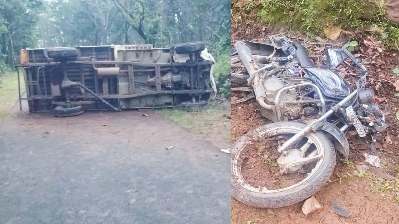 हादसे में क्षतिग्रस्त हुई पिकअप वाहन और बाइक