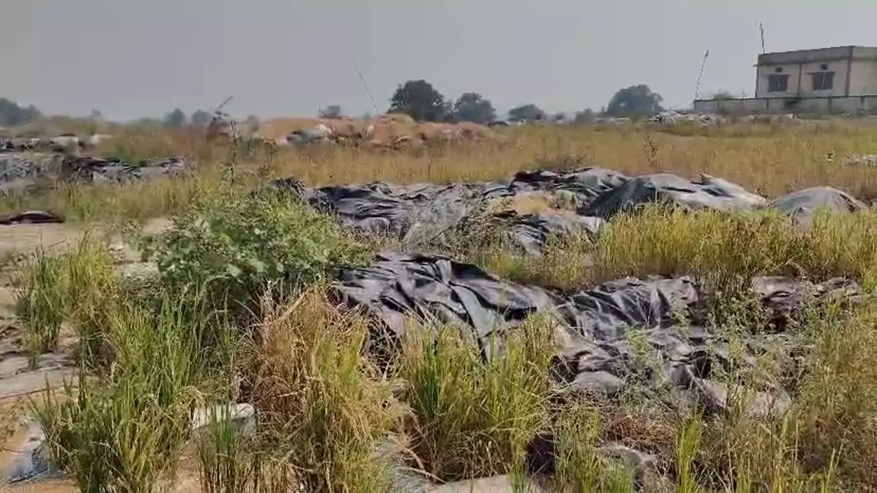 ऐसे में कैसे शुरू होगी धान खरीदी: संग्रहण केंद्र में अव्यवस्था का आलम, लाखों का तिरपाल सड़ा, चारों तरफ खेत जैसे हालात