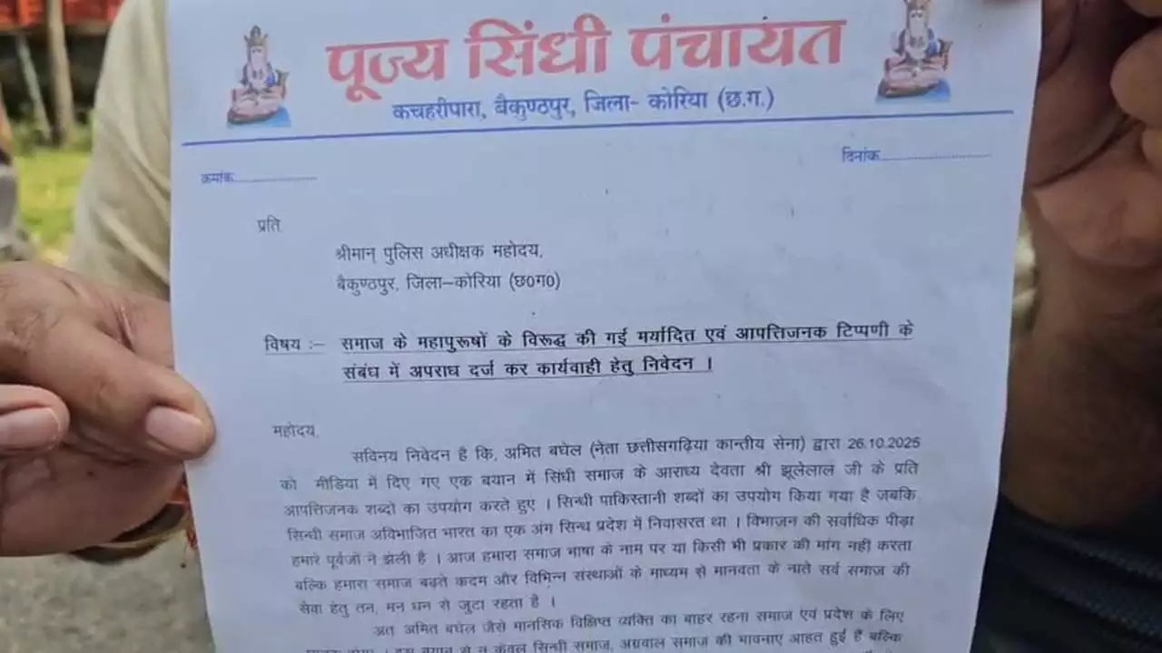 सिंधी पंचायत और अग्रवाल महासभा ने अपने ज्ञापन में कहा कि 26 अक्टूबर को मीडिया में दिए एक बयान में अमित बघेल ने पूज्य महाराजा अग्रसेन जी, डॉ. श्यामा प्रसाद मुखर्जी, पंडित दीनदयाल उपाध्याय और सिंधी समाज के आराध्य देवता श्री झूलेलाल जी के प्रति अमर्यादित भाषा का प्रयोग किया है। महासभा का कहना है कि इस बयान से समाज की धार्मिक और सामाजिक भावनाएं गहराई से आहत हुई हैं।