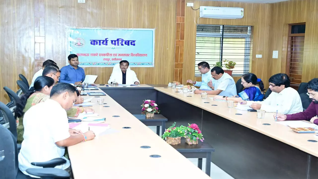 भिलाई। छत्तीसगढ़ के रायपुर स्थित कुशाभाऊ ठाकरे पत्रकारिता एवं जनसंचार विश्वविद्यालय में कार्यपरिषद् की 63वीं बैठक आयोजित की गई। जिसमें वैशाली नगर विधायक रिकेश सेन भी शामिल हुए। इस दौरान उन्होंने बैठक में सायबर अपराध नियंत्रण संबंधित नये कोर्सेस प्रारंभ करने सहित अनेक सुझाव दिए हैं।