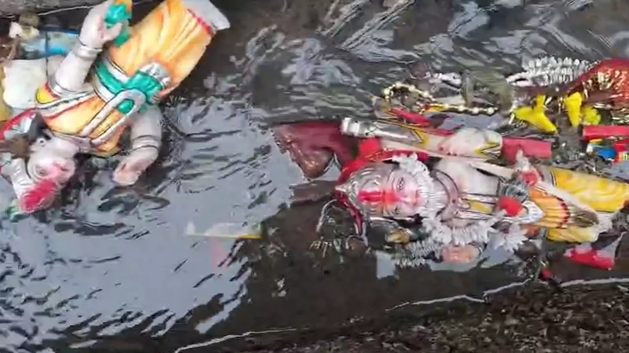राम, लक्ष्मण, सीता और हनुमान जी की प्रतिमा को नाली में फेंका
