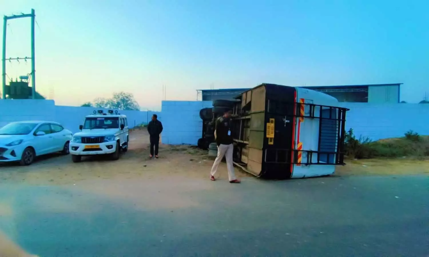कोटा मार्ग पर बड़ा सड़क हादसा: 40 यात्रियों से भरी बस अनियंत्रित होकर पलटी, दो गंभीर रूप से घायल